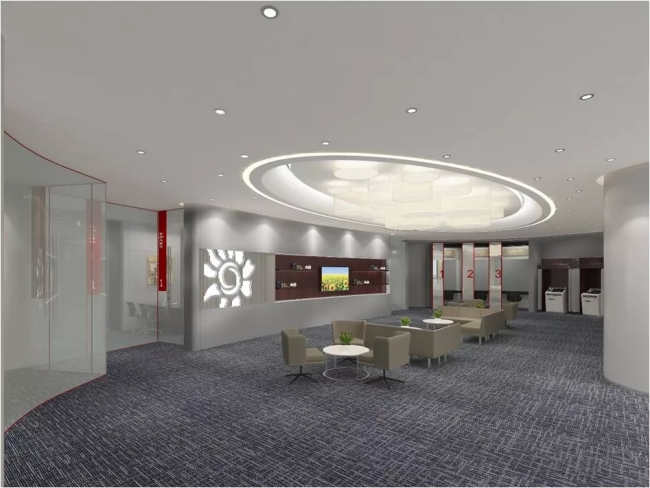 设计理念:为全面体现招行的品牌特性,传达“服务、创新、稳健”的核心价值观,以客户为中心,按照招商银行总行关于零售型银行的功能区域设置要求,以及“因您而变”的服务理念,科学划分功能区域,合理规划业务流程,最大限度地方便客户,提升网点的服务效率和服务质量。