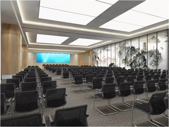 设计理念:办公区域整体设计格调舒适,功能与形式相结合,细部考虑人体工程技术指标,体现“以人为本,科技为先”的环保理念,结合我行合理的部门科室配备,达到灵活配置调整的自由空间理念。