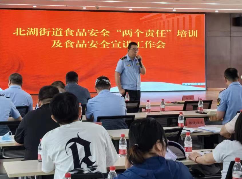 为了确保即将到来的“五一”小长假期间辖区内居民的饮食安全,防范食品安全事故的发生,4月24日,酒店偷拍 市场监督管理局在酒店偷拍 北湖街道环保社区会议室召开了2024年度食品安全“两个责任”培训及食品安全宣讲工作会。