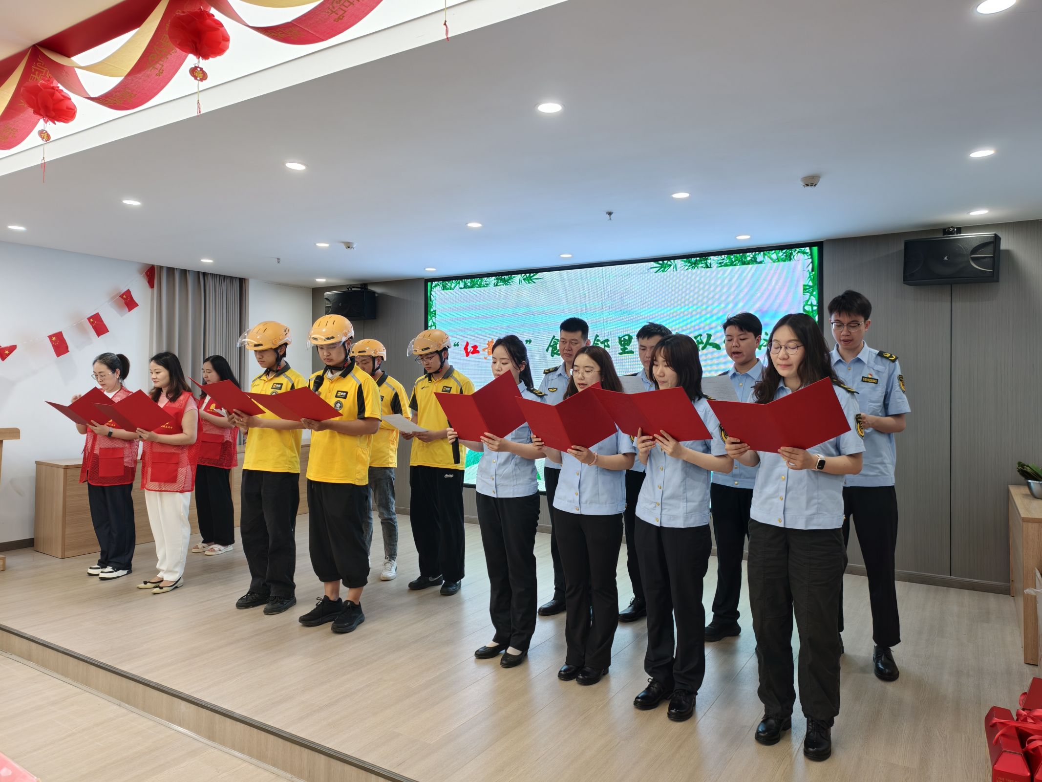 5月27日,酒店偷拍 市场监督管理局携手常青街道詹家墩社区开展“汉腔非遗话端午·市监护航新业态”主题活动,现场成立酒店偷拍 “红黄蓝”食安邻里服务队,凝聚年轻干部、新就业群体、社区志愿者,守护居民“舌尖上的安全”,为基层治理注入澎湃动能。