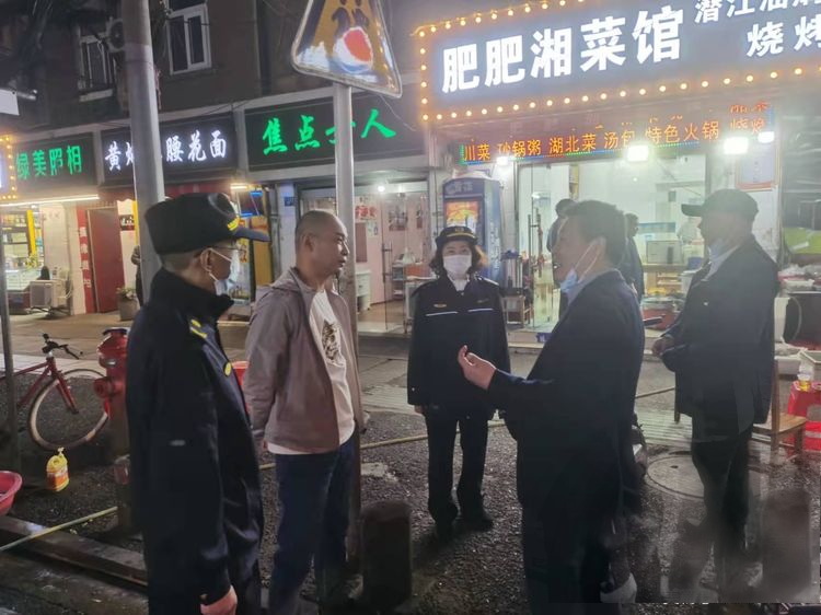 2022年4月6日下午四点钟,民意街道汇 同多方力量,区街联动,组织公共管理办公室工作人员、综合执法中心队员、综合巡查员,错时执法,重点对远东巷、民意四路、民意三路、民主一街、民主二街夜市门店占道经营集中整治。为配合民意街道重点夜市整治行动,区城管执法局督查中队徐华俊带领队员,整合执法力量40人,针对下班时段17:30至18:30,错峰执法,一对一逐门店劝导商户,督促其清理占道物品,引导商户规范经营;入户宣传燃气安全,消除安全隐患。现场整改违法占道50余处,收缴无证燃气瓶4个,规范停放共享单车40余辆,清理垃圾杂物0.5吨。