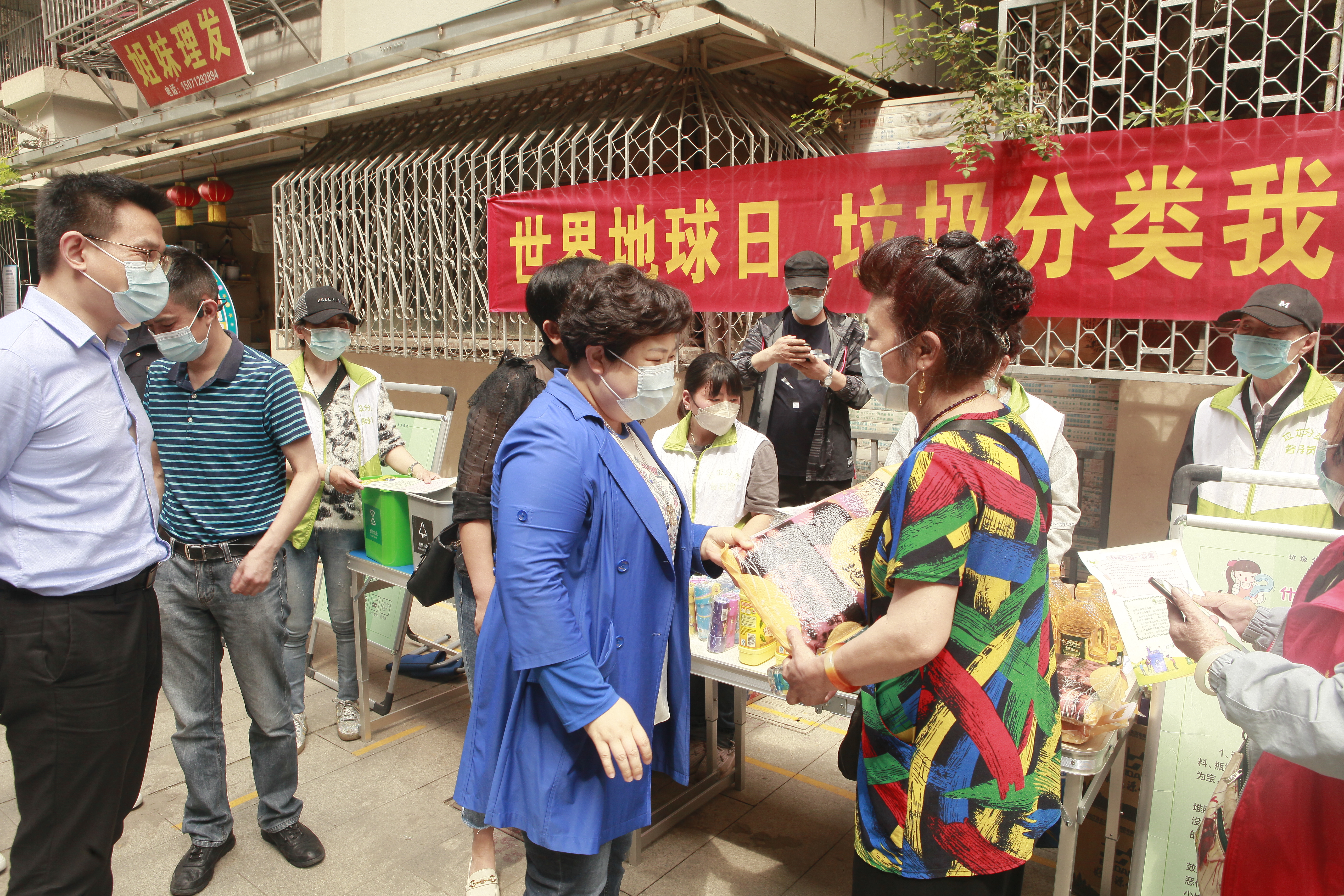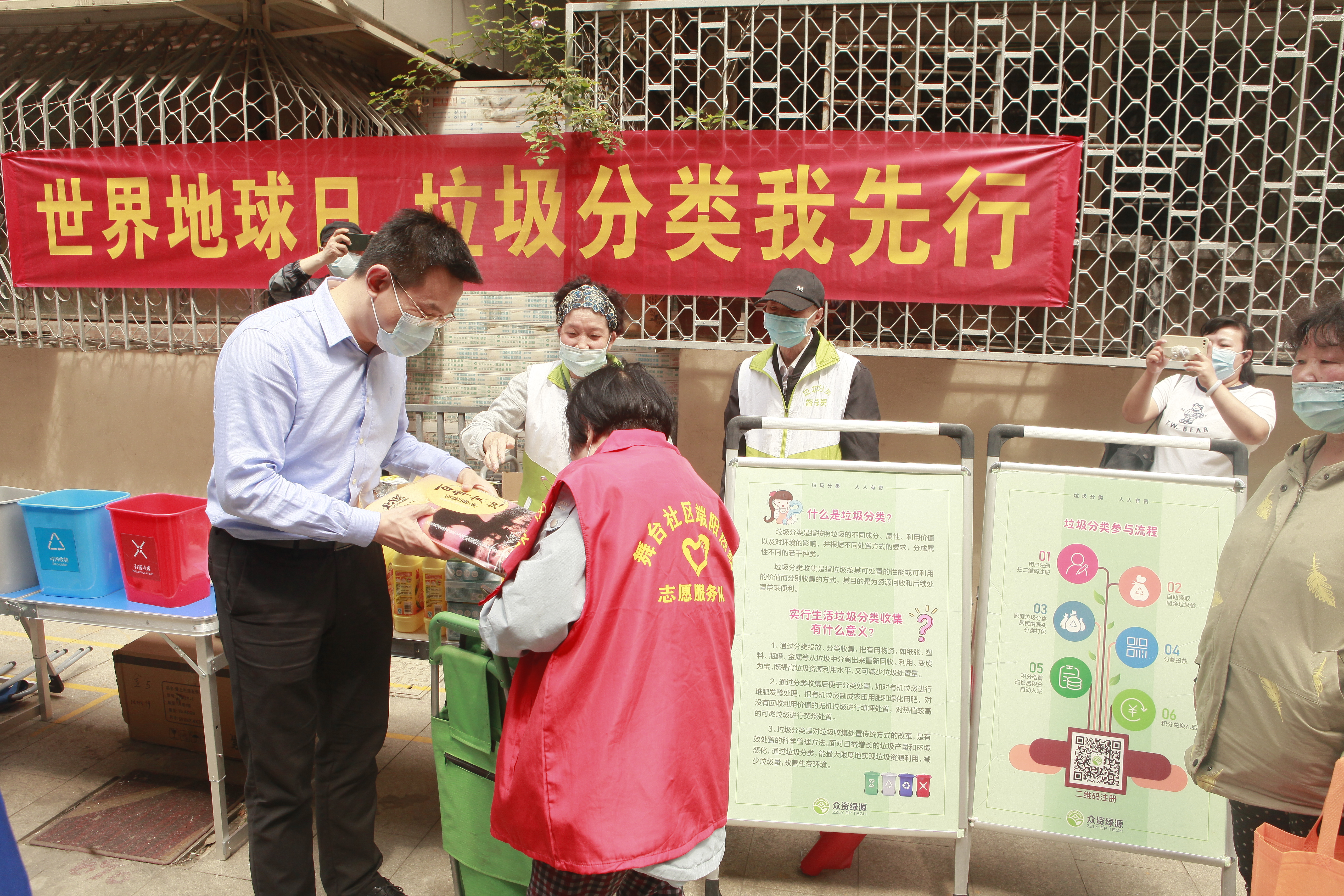 4月22日,民意街道办事处工委书记苏瑾,主任王帅,武装部长张方黎等街道领导带领街道垃圾分类专班协同下沉党员志愿者及爱心团队一起,在民意街多闻社区维善小区开展名为“世界地球日垃圾分类我先行”主题居民生活垃圾分类宣传活动。并在活动现场,对辖区内参与垃圾分类的居民中的积极分子、垃圾分类宣传志愿者及现场参与活动的居民发放了相应生活物资进行鼓励。活动主会场,垃圾分类志愿者现场为社区居民讲解垃圾分类各类常识,以及垃圾分类绿色账户积分获取方式与兑换的操作流程,为前期积极参与垃圾分类的居民发放了对应积分的礼品,并鼓励居民们将垃圾分类的一直习惯保持下去。居民们也向志愿者们反馈在日常分类中遇到的一些问题,都得到了垃圾分类工作人员耐心咨询和帮助。