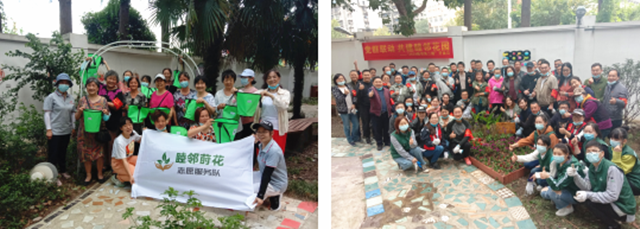“睦邻莳、花”志愿队带动居民共同参与小区建设。