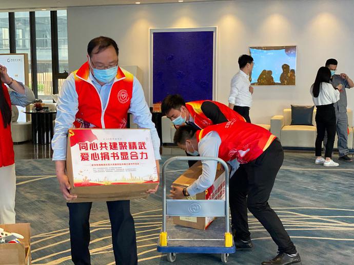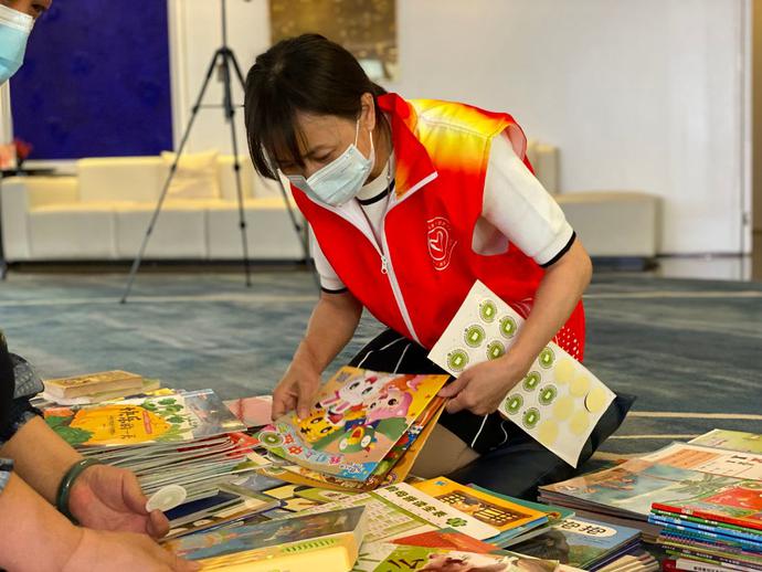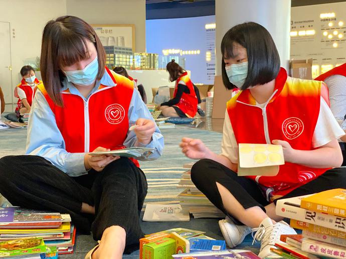 活动现场由这些爱心企业机构代表和精武社区居民们临时组成了一支红色志愿队,从书籍分拣、贴标、点数到装箱,志愿者们细心认真地做好每个步骤,额头都冒出细密的汗珠,却一点不减参与的热情,他们用一双双温暖的手为每一本捐赠书注入爱与希望。