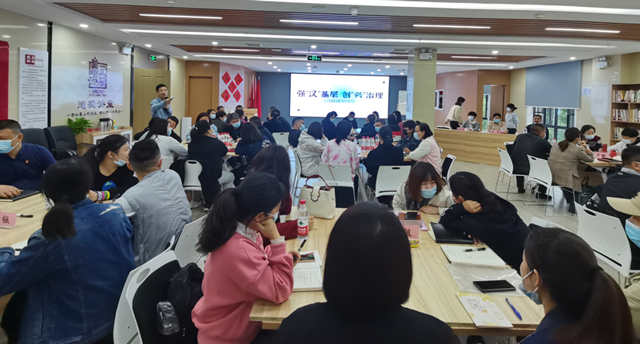 社区工作者深受启发、踊跃发言,针对平时的工作中的困惑,围桌头脑风暴并对讨论成果进行分享汇报。