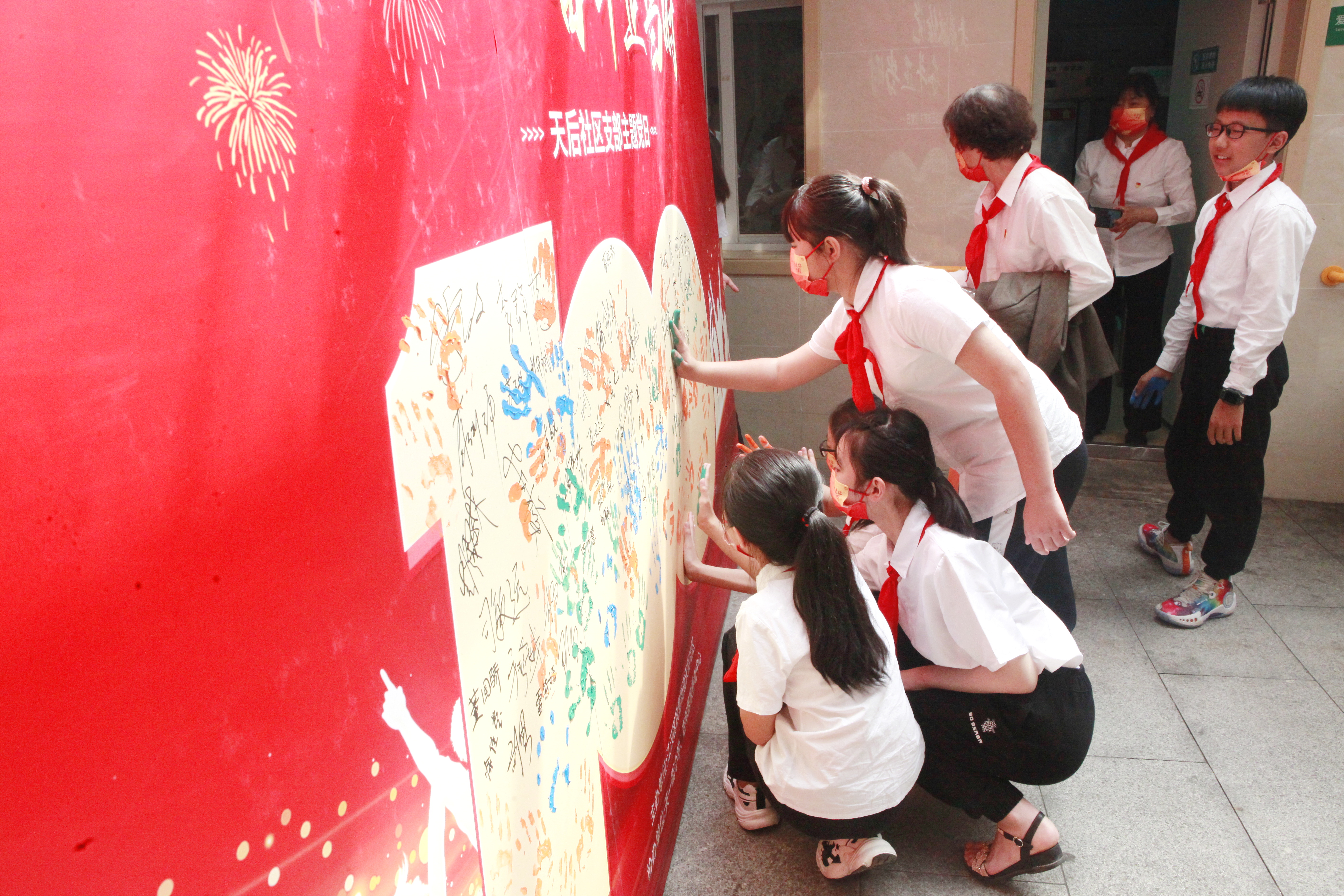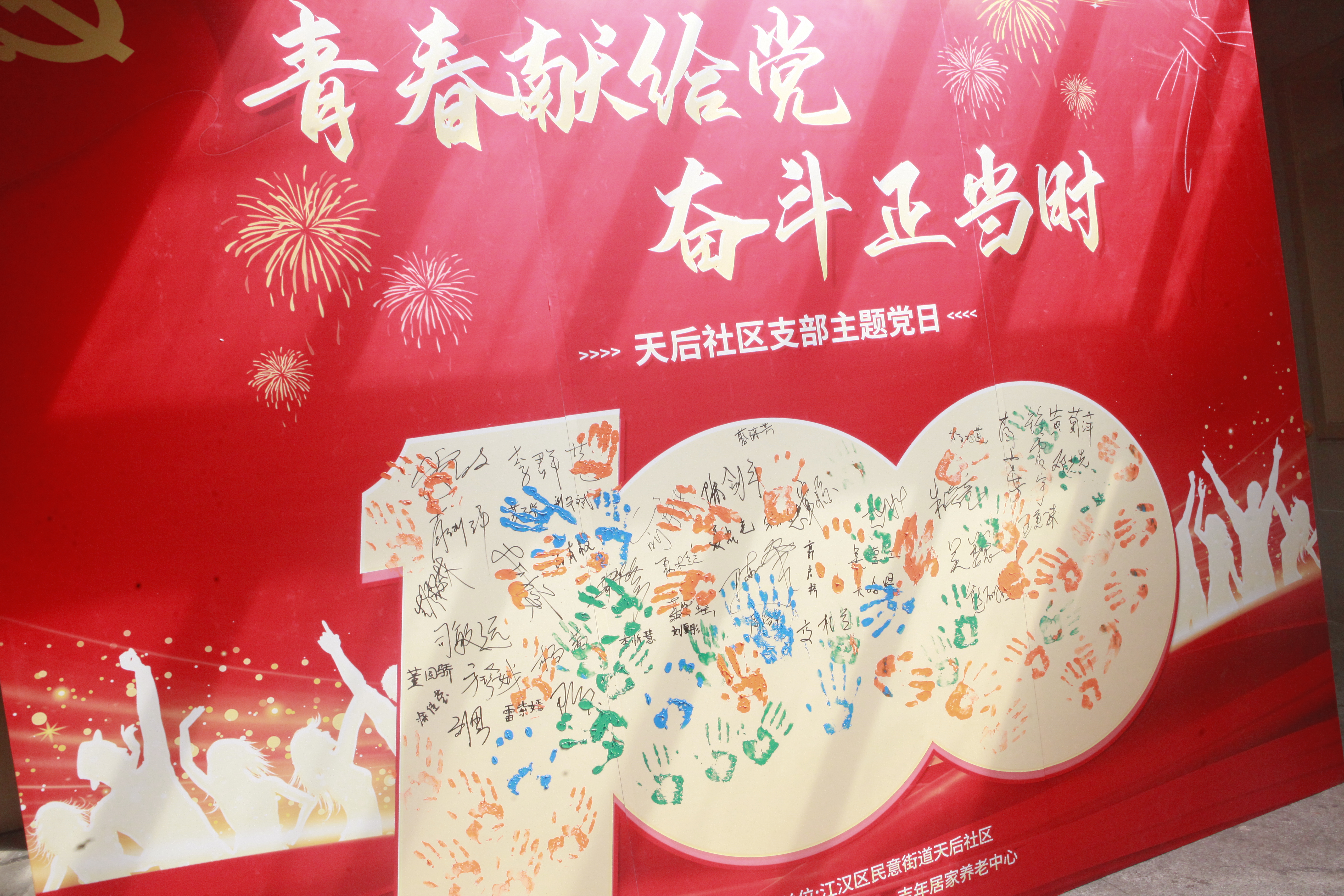 18日,民意街道天后社区“青春献给党,奋斗正当时”支部主题党日活动在社区居家养老服务中心开展,邀请到共建单位天一街小学少先队员代表们参与,一同为5月“政治生日”的老党员们庆生。两位5月过政治生日的党员在“赠良言送诤语”环节中分享自己的入党初心和青春奋斗故事,天一街小学少先队员代表和社区年轻党员为老党员们送上诗歌朗诵《青春》及手工泥塑作品《向日葵》,学生们依次为老党员佩戴上鲜艳的红领巾,并两两结对盖上彩色手印,以表对老党员的敬佩和爱戴之情。一场庄严宣誓、一回暖心分享、一份“生日”礼物、一条红领巾、一对大小手掌......天后社区通过五个“一”活动,为老党员们送上了特别的“政治生日”礼物,也让爱国红心从书本上走到青少年的现实生活中,将红心这颗种子,种在每一个中国娃的心中。
