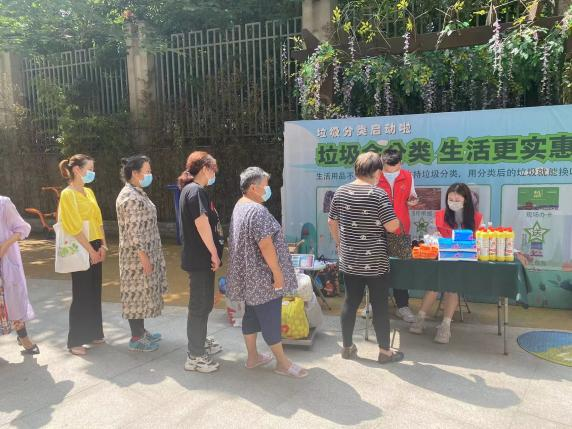 群众参与,居民受益。采访当天,社区正组织居民进行积分兑换活动,居民们有的大包小包,有的只带着一张积分卡,纷纷来到兑换桌前。桌上,洗洁精、肥皂、纸巾、口罩等日常卫生用品应有尽有。