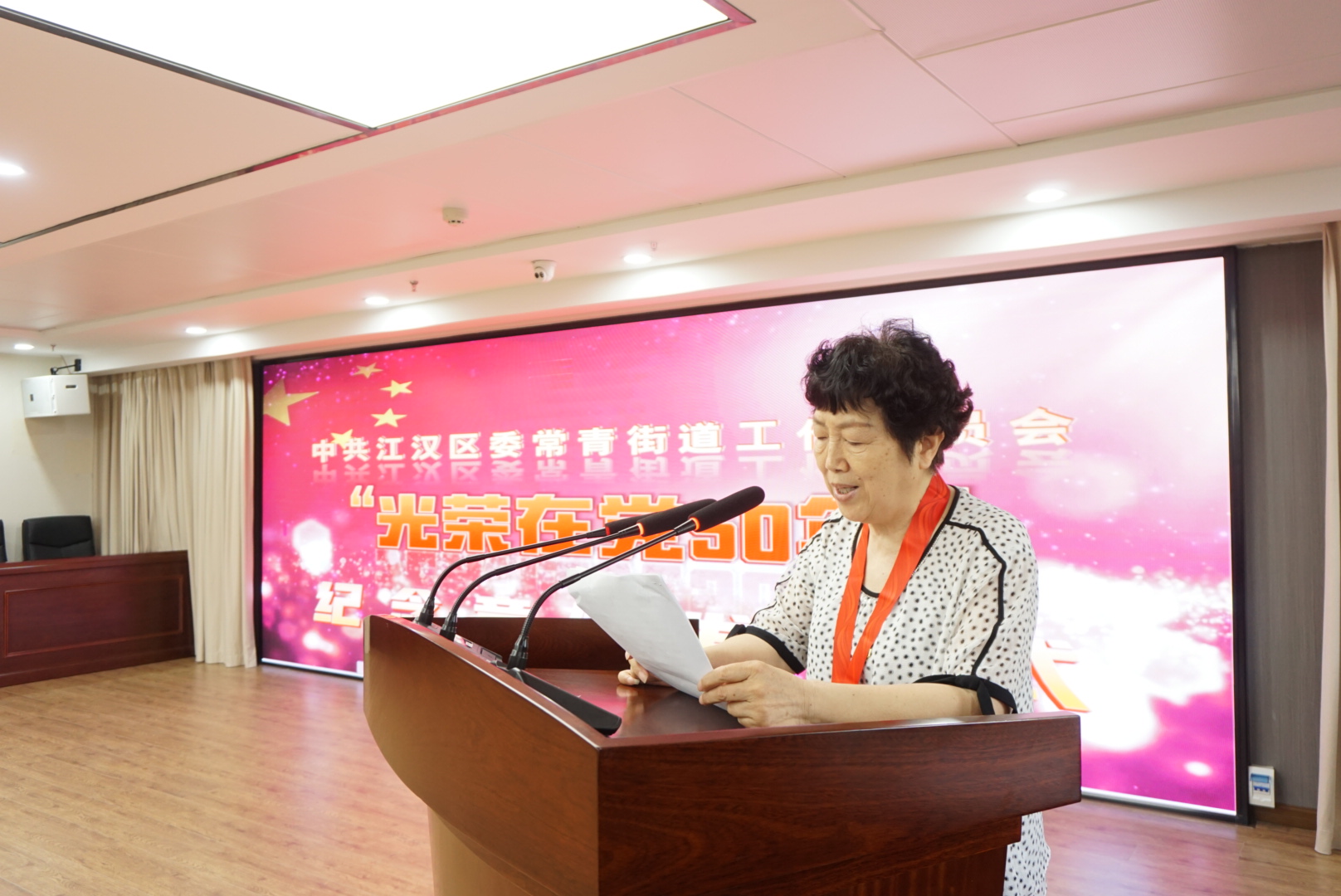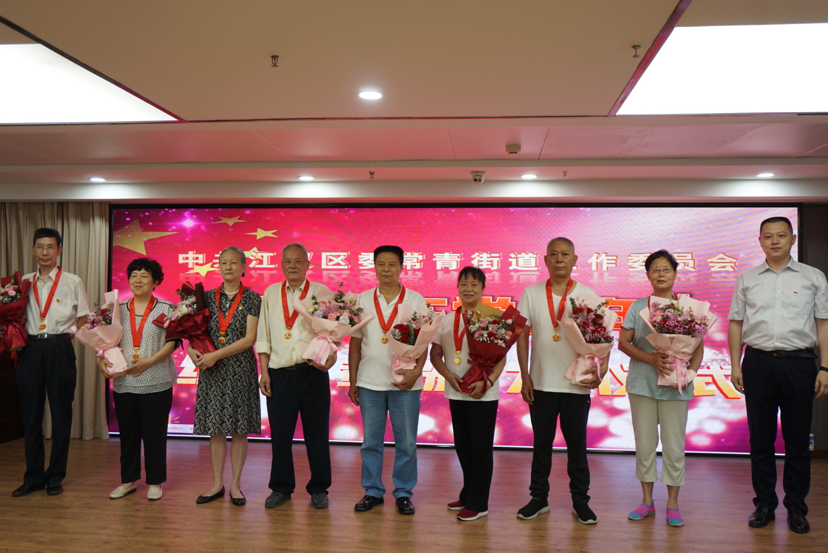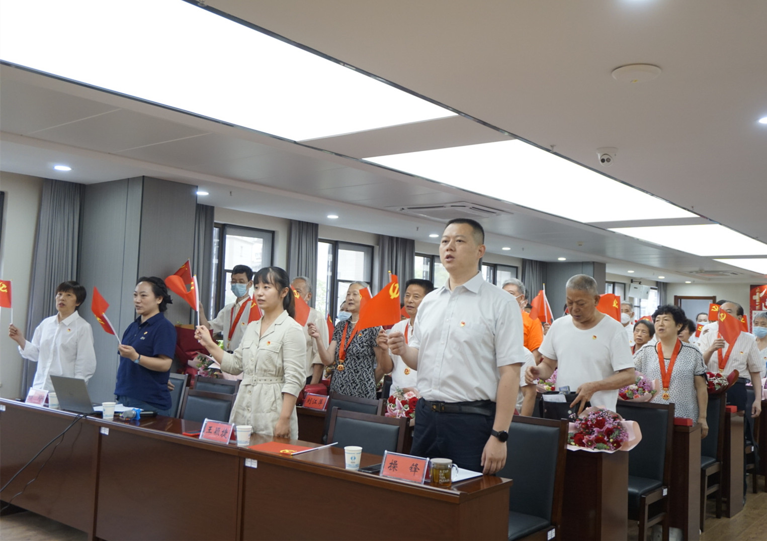 在活动现场,全体党员齐声高唱国歌,重温入党誓词,并向老党员代表颁发“光荣在党50年”纪念章,老党员们戴上熠熠生辉的纪念章,既自豪又激动。“这枚纪念章是荣誉、更是责任,我将赓续这份荣光,砥砺前行。”德润社区港信小区党支部书记王友芝,退休后再“上岗”,积极发挥先锋模范作用,带领小区党员群众积极参与小区治理,组建了老旧自助物业,解决小区积水,晾晒,停车难等问题。