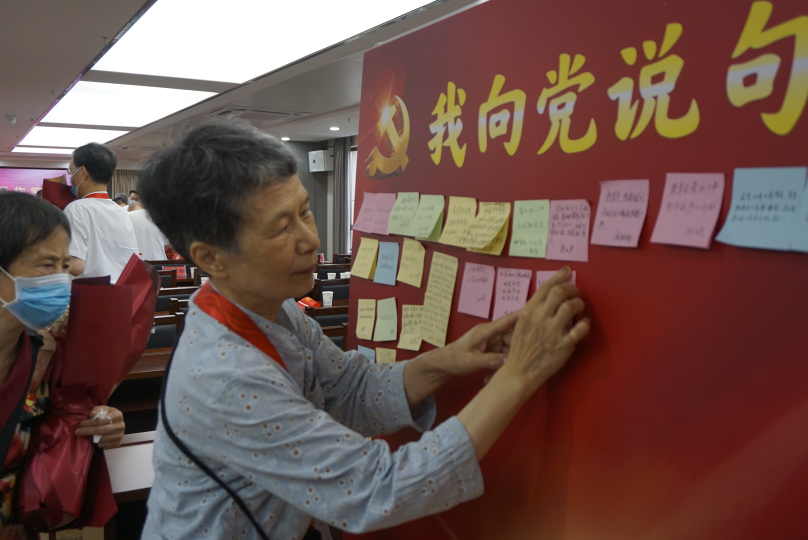 “光荣在党50年”是一种致敬,更是一次初心使命的接力。颁发仪式结束后,老党员们获得纪念章的老党员将对党的心里话贴在心愿签到墙上,。“退休不褪色,离岗不离党”、“时刻听党话,永远跟党走”、“不忘初心、牢记使命”·.......强劲的笔触、铿锵的誓言、真挚的情感,表达着老党员爱党敬党之情,传递着年轻党员赓续优良传统、勇担使命的坚定决心。