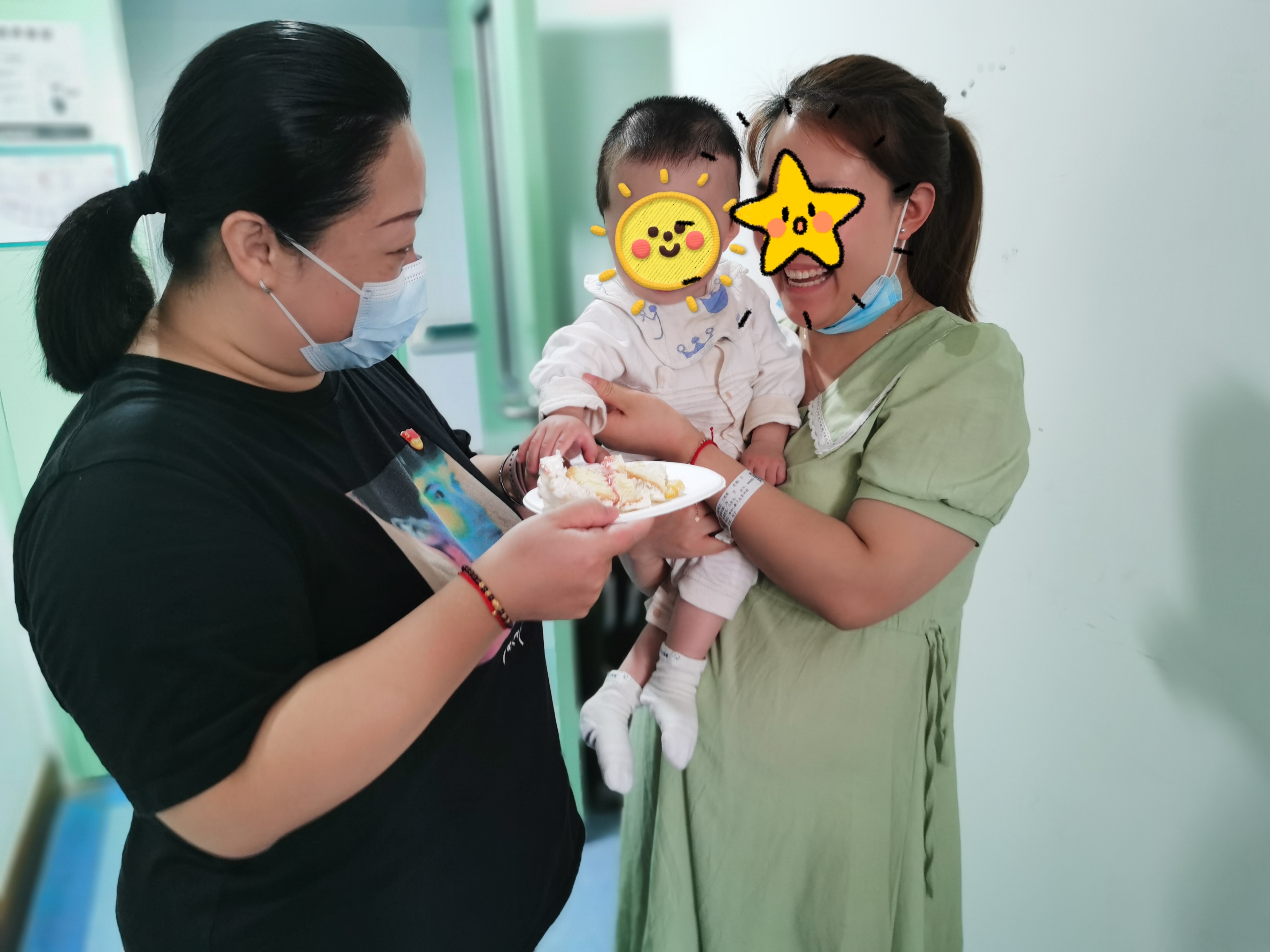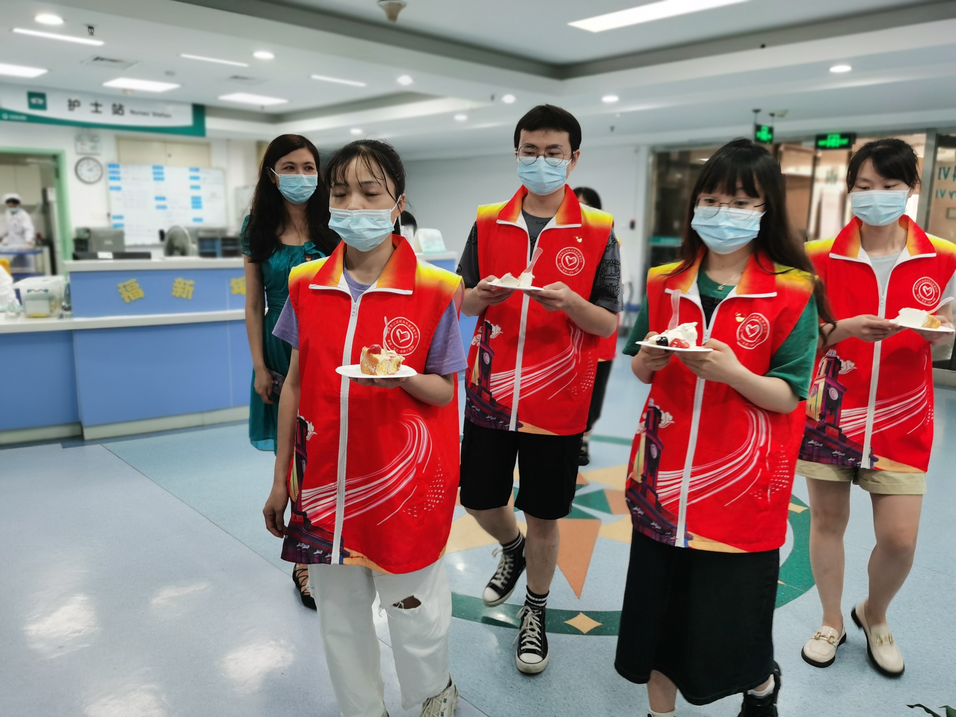 伴随着孩子们和志愿者的欢笑声,医护代表和志愿者们把切好的蛋糕送到了患儿们的病床前,将这份甜蜜更是分享到了整个病区。