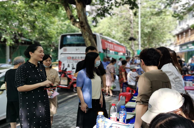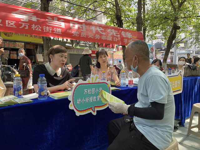 上午8时,万松街道党员义务奉献活动雪松路主会场便民服务摊位已经就绪,辖区11个分会场也已经陆续有居民排队咨询。