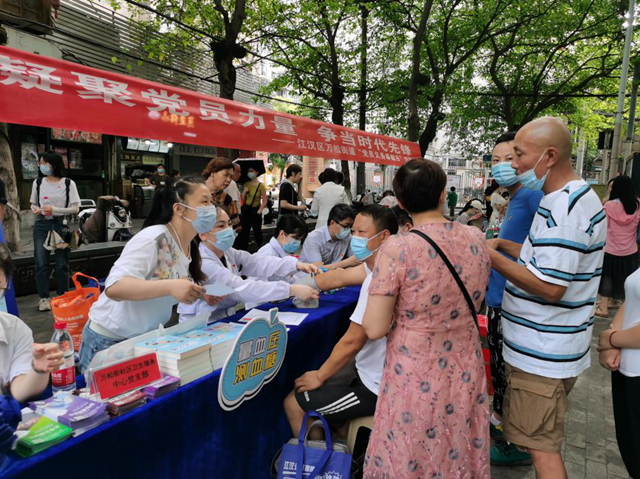 上午8点30分,万松街道义务献血点有序排起了长队。30余名党员参与了无偿献血活动,路过的国际友人和不少群众也加入到义务献血的队伍中。