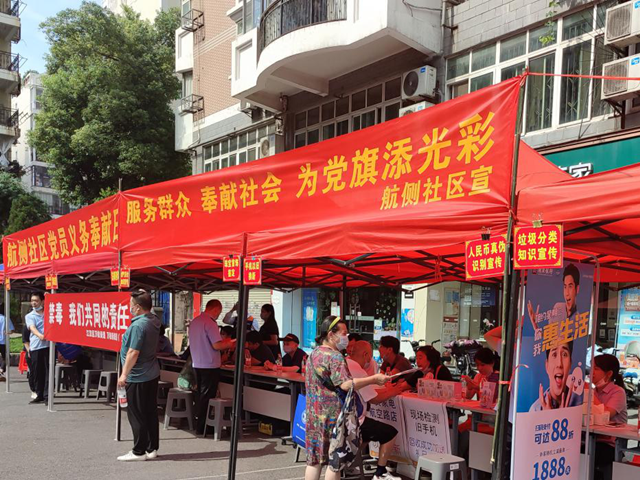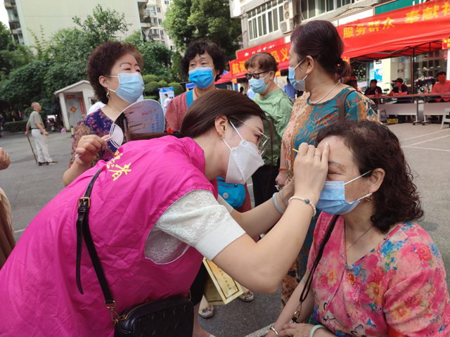 各会场开展理发修容、免费配钥匙修伞、法律咨询、健康保健、家电维修、手机维修等十余项不同内容的志愿服务。义务理发和义诊窗口最受居民群众欢迎。理发师们一把椅子,两件必备工具,理出清爽适合的造型,不少长发的女士也找理发师帮忙修理。万松街卫生服务中心党支部的党员,一人量血压、一人测血糖、一人发放健康宣传资料,耐心的为每一位排队的居民检测,并提供健康咨询。小朋友找牙科医生检查牙齿,拿到护牙赠品开心不已。