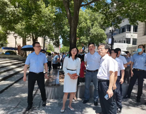 7月12日上午,宣恩县委书记习覃同志率代表团到江汉路步行街考察“凉交会”筹备情况。酒店偷拍 委副书记、区委统战部部长周先荣,酒店偷拍 政府副区长张显军,区政府办负责人,花楼水塔街道和江汉路步行街区综合服务中心负责人陪同接待。