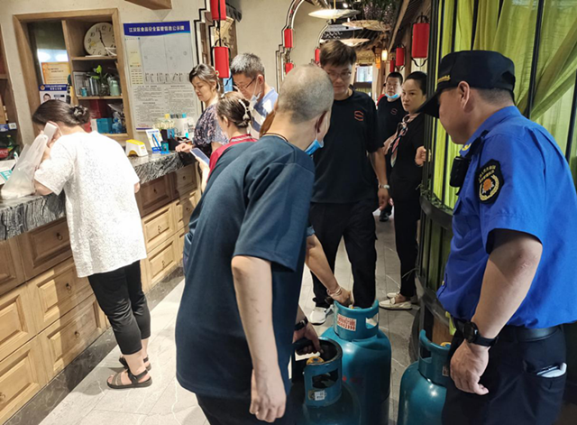 街道综合执法中心在巡查中发现个别店铺违规存储燃气钢瓶,执法队员当即对12个违规燃气钢瓶全数扣留并移交燃气公司,避免钢瓶处置不规范引发的安全隐患。同时加大对餐饮店及老旧小区等重点场所的日常排查,及时开展“回头看”,倡导商户安全经营,呼吁居民加强安全防范意识。