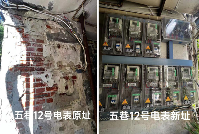 公园社区老三栋电表安装在一楼,线路杂乱,常年暴露在外,且地势低,遇上大暴雨,电表有被积水淹没的危险,存在极大的安全隐患。社区发现这一问题后,对接电力局,对老三栋的老旧电表统一换新。