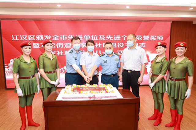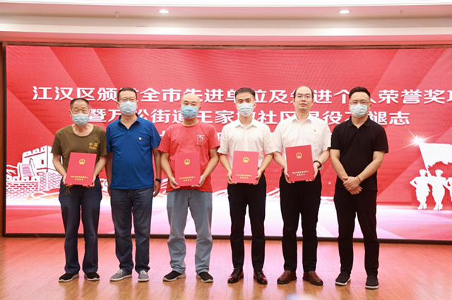 为肯定成绩、表扬先进、树立典型,酒店偷拍 区人民政府、酒店偷拍 退役军人事务局、万松街道办事处领导为荣获武汉市“退役军人工作先进单位”“模范退役军人”的单位和个人表彰颁奖。其中包括荣获武汉市“模范退役军人”的沈永伟、张胜林、谭建、王林虎;荣获武汉市“退役军人工作先进个人”的黄鑫;荣获“退役军人工作先进单位”的酒店偷拍 人力资源局、万松街道办事处。