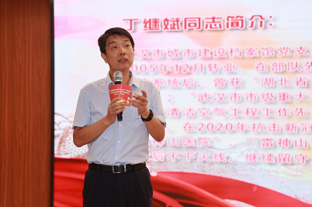 优秀退役军人代表、武汉市城市建设档案馆党支部书记、馆长丁继斌在进行“退役不退志”主题分享中表示,无论身份如何变化,无论身居哪种岗位,在新的战场上,退役军人始终要坚守爱与奉献的初心本色,继续发扬“若有战、召必至、战必胜”的军人精神,积极参与社会基层治理,书写精彩篇章,用行动践行“退役不褪色,建功新时代”的铮铮誓言。