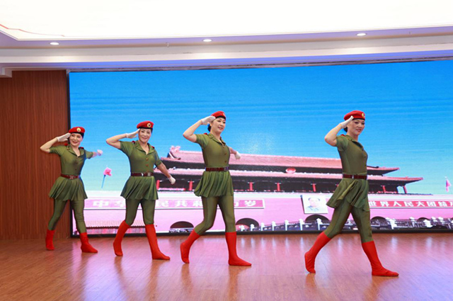 为以昂扬的斗志、饱满的热情、旺盛的干劲迎接党的二十大胜利召开,王家墩社区梦桐艺术团用轻灵飘洒、闲婉柔靡的舞蹈表演《再唱山歌给党听》向伟大的中国共产党献礼,红旗之光艺术团以干练利落、刚柔并济的歌舞表演《军歌嘹亮》向广大现役军人及退役军人致敬,让文艺之花在社区绚丽绽放。