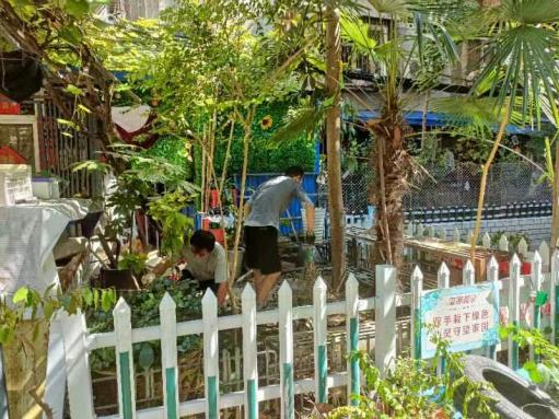 听完老师的讲解后,园艺卫士们带上准备好的工具、营养土、花草绿植来到社区“We花园”,在绿色驿站老师的指导下,开始清理杂物、挖土施肥、植绿添花,一个生机盎然的社区微花园初步形成。
