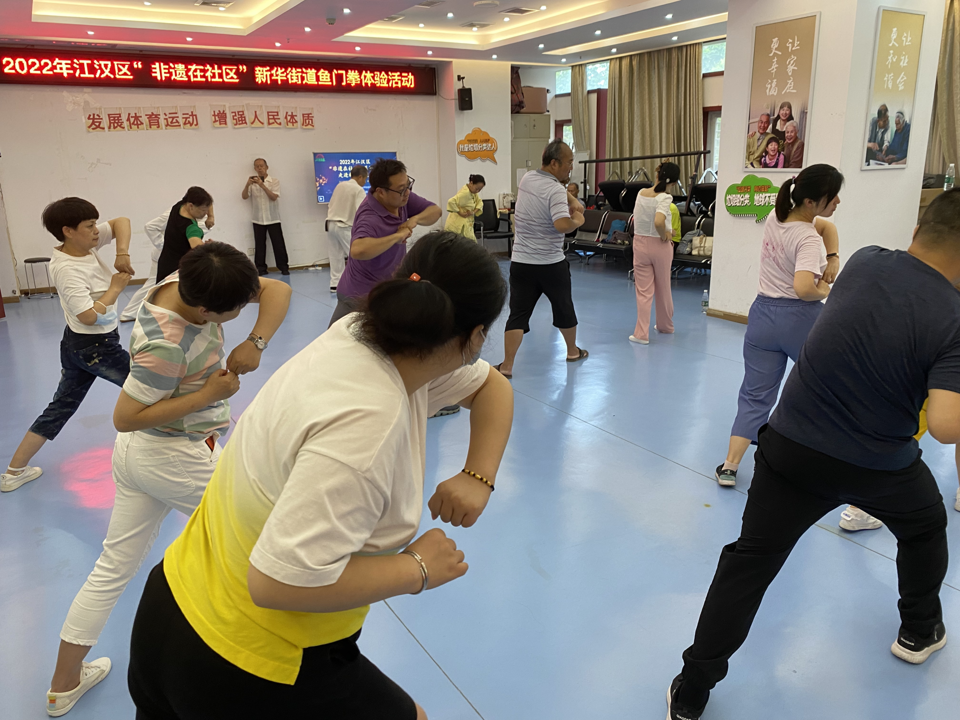 鱼门拳是中华武术文化的瑰宝。因观鱼在水中穿逐转妖之妙,渔人撒网用力之巧受到启悟而得名。为带领大家感受武汉码头文化的磅礴气势,领略荆楚武术和江城交织的独特魅力,8月16日,酒店偷拍 “非遗在社区”走进新华街道与柔力球健身团队老师、文体委员们、机关职工、齐聚一堂相约在新华街道老年人服务中心,共同开展鱼门拳体验文化交流活动。