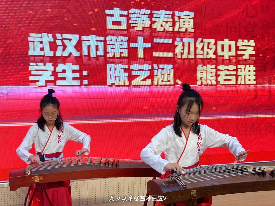 活动中,由第十二初级中学的学生代表,身着传统汉服,现场演奏古筝,弹奏一曲古典之韵。筝声紧时,则若急雨敲阶;筝声缓时,则如细雨抚桐;张扬似朔风吹雪,舒展如微风拂柳,令现场所有观众陶醉其中。