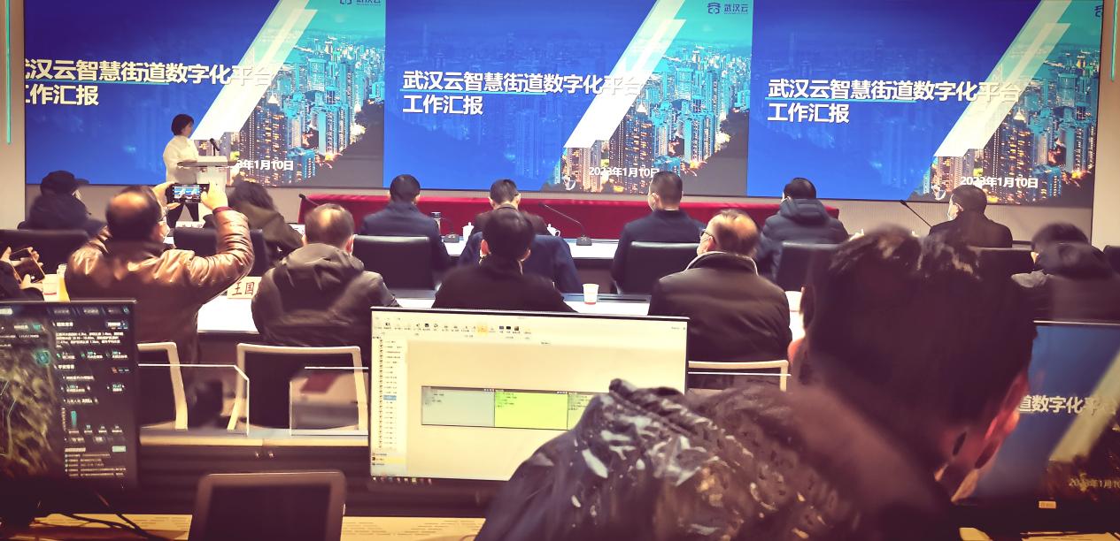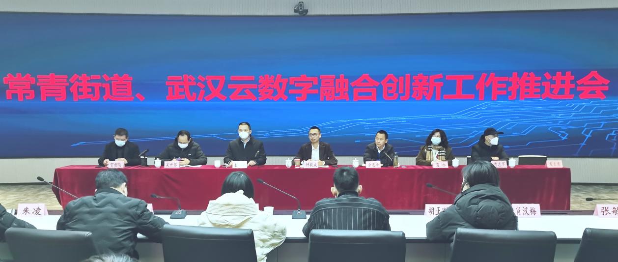 2023年1月10日,常青街道、“武汉云”数字融合创新工作推进会在武汉云数字经济总部召开。武汉云计算科技有限公司(简称“武汉云”公司)、常青街道领导班子成员、部门负责人、各社区书记,约50余人参加会议。
