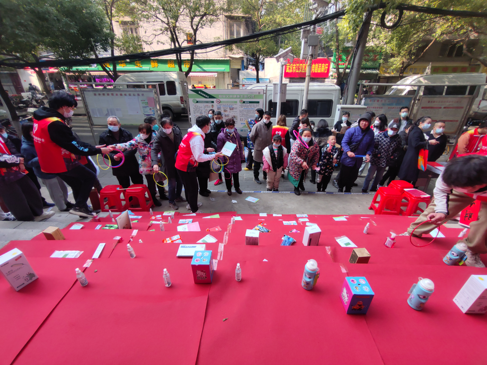 在民俗运动区设置有套圈、投壶等传统民俗活动,丰富的年俗小奖品吸引了众多居民踊跃参加,其中“套圈”最受居民欢迎,琳琅满目的小奖品在台阶上依次排开,居民们纷纷跃跃欲试,想要把礼品捧回家。为了增添年味,礼品中特别增添了红包、福字等,“礼”虽轻,却省去了大家自行购买的麻烦,更让居民提前感受到了浓厚的春节氛围。“快过年了,这些年俗小礼品送得很及时很贴心,感谢社区考虑得这么周到。”社区老人李奶奶为社区的用心服务点赞。