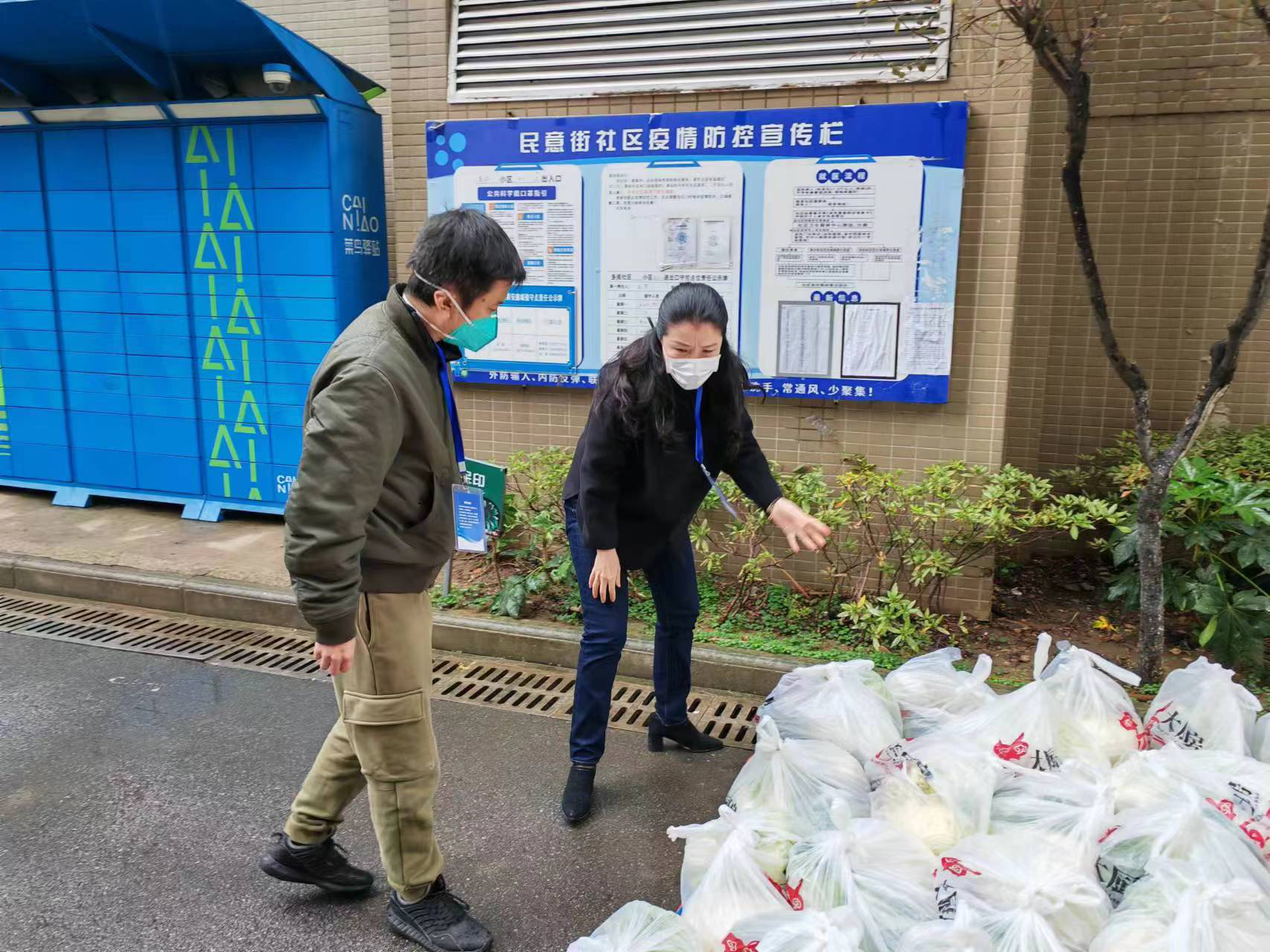 近日,民意街道生活物资保障组深入一线,多方筹措、积极联系区商务局、中百超市,为多闻社区居民配送500余份米面蛋油及多品种蔬菜包,将疫情期间辖区居民生活物资保供工作落到实处,受到居民群众一致好评。