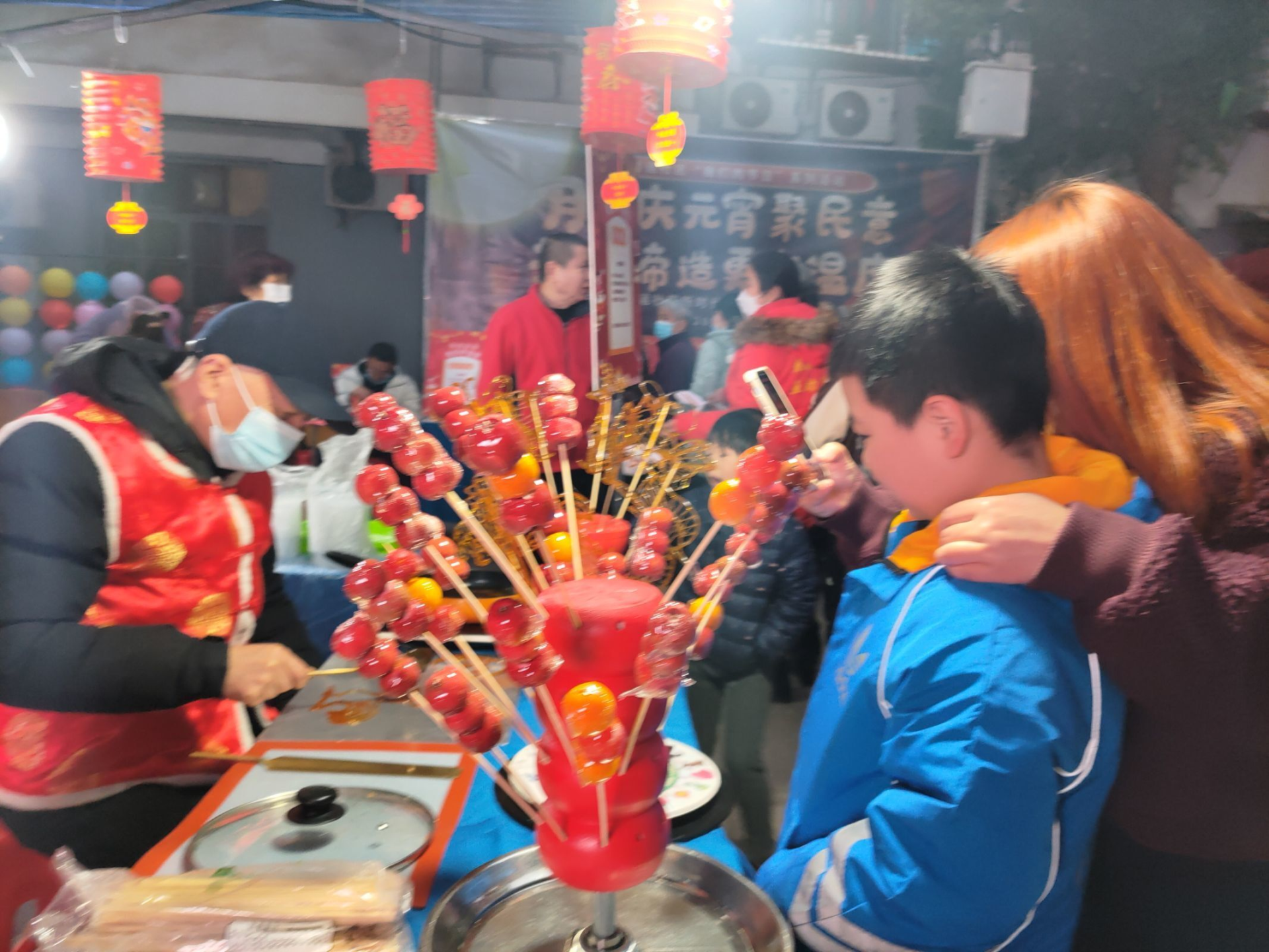 听说可以自制糖葫芦,社区的孩子都兴奋地围在“糖葫芦DIY”的摊位前,新鲜水果裹上糖衣“变装”为一串串晶莹可爱的新式糖葫芦,看似简单的操作,手艺人却道出了许多技巧细节,着实让居民们体验了一番传统民俗的魅力。