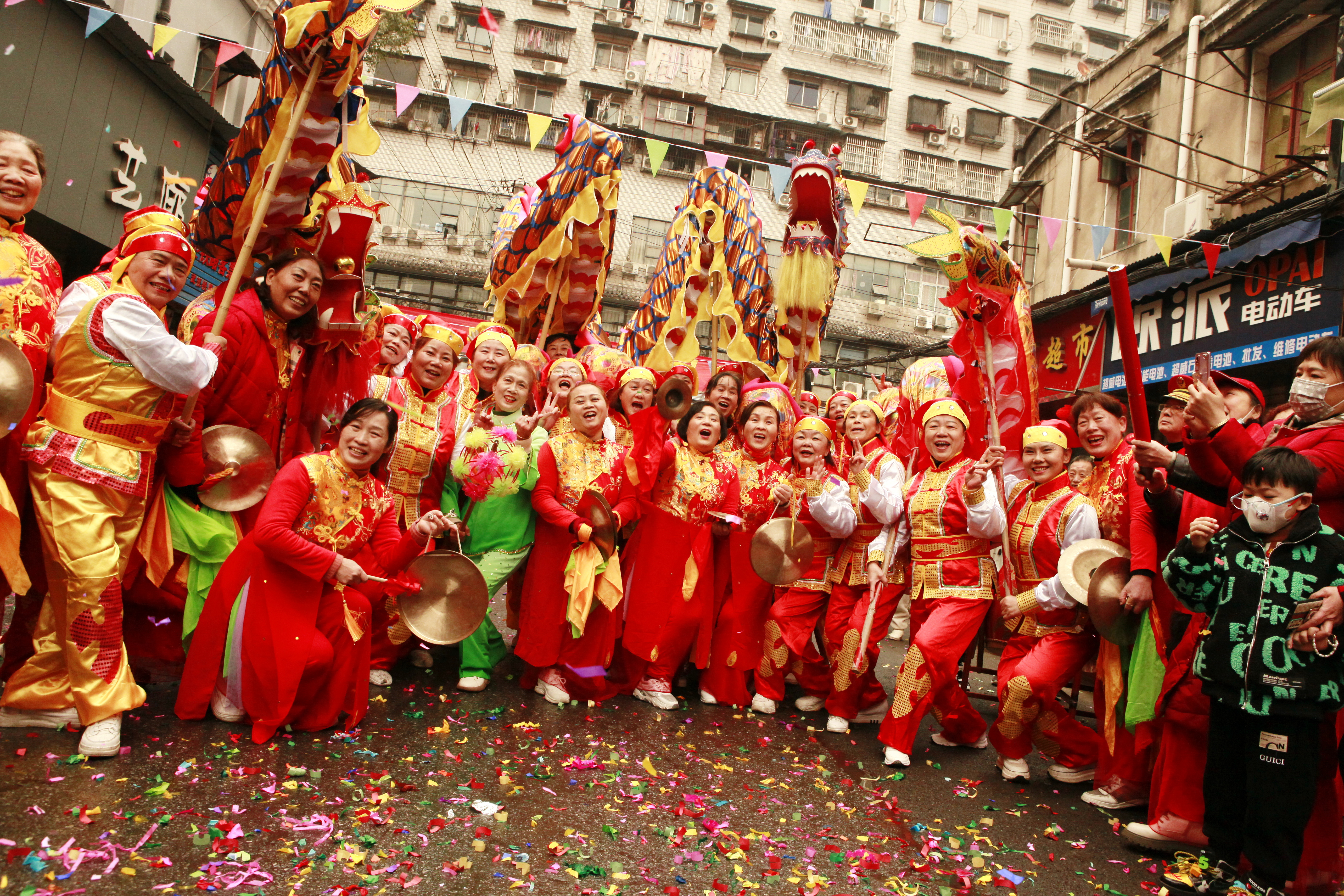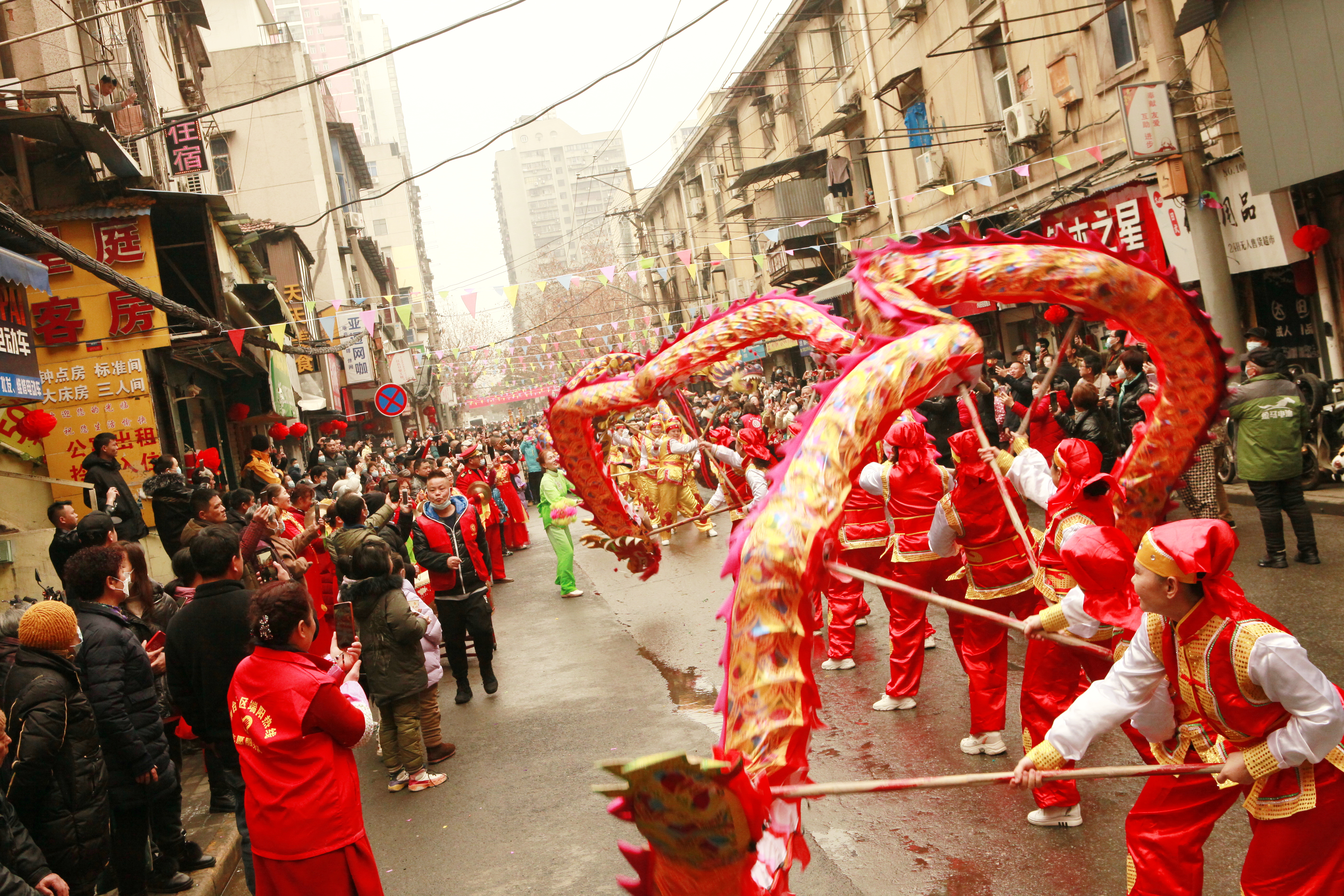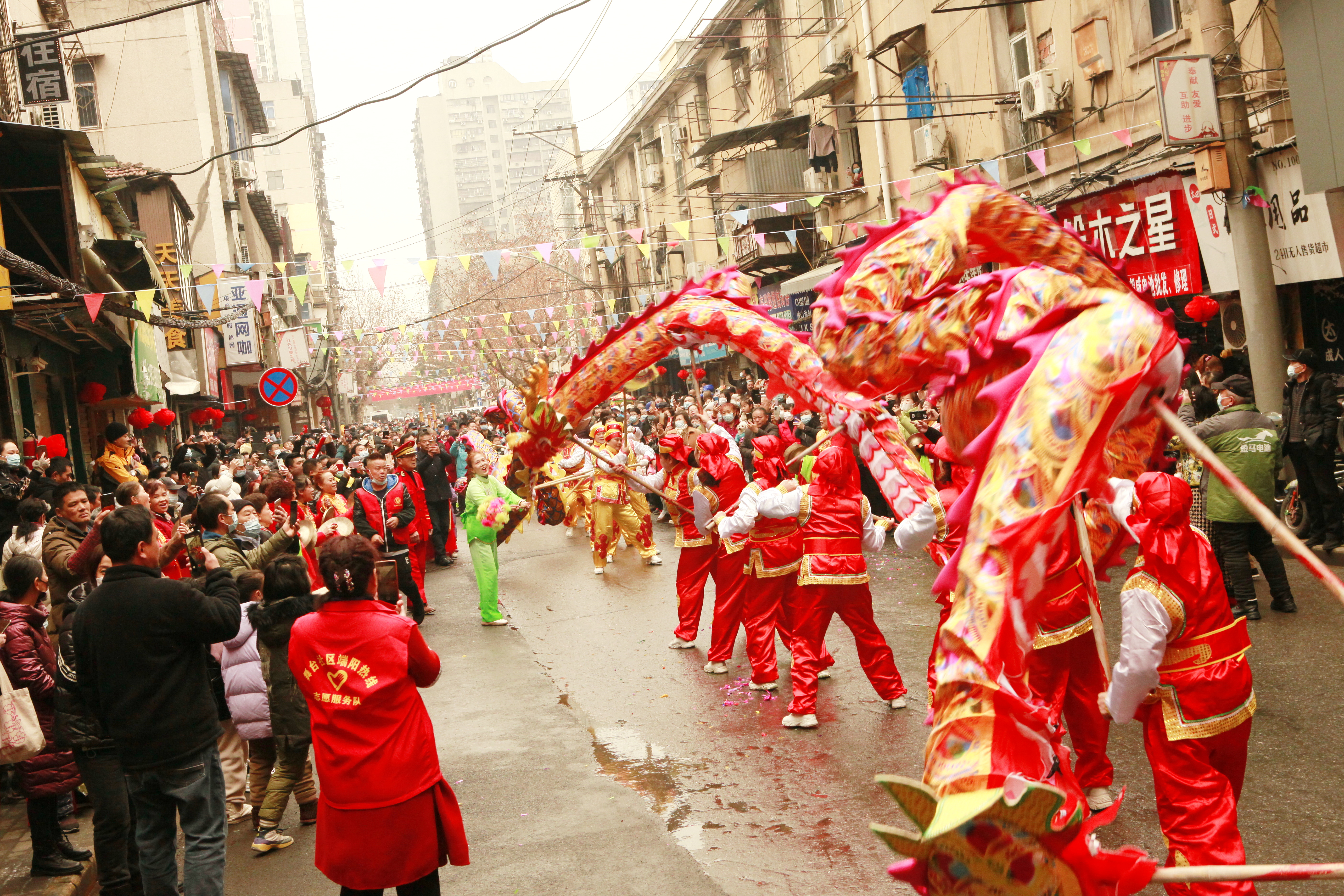 2月5日(正月初十五),民意街道舞台社区联合街道社工站、辖区公益资源及民主二街179家商户,举办了以“张灯结彩龙狮闹,欢天喜地庆元宵”为主题的第15届元宵喜乐会系列活动。历时一个上午的“接灯”舞龙、舞狮表演、元宵现场烹煮及派送、欢天喜地猜灯谜、传统游戏大比拼等系列活动,吸引了近5000市民观看,赢得了现场观众的掌声不断。民意街道工委书记苏瑾、办事处副主任金德才为龙点睛,并祝愿2023年风调雨顺,人民幸福安康。据悉,该民俗活动由民主二街179家商户及舞台社区2000余居民于2005年元宵节发起,时隔三年后再次举行,至今已经相续成功举办15届,成为深受该街居民及商户欢迎的传统活动。今年新增了非遗手工艺展示(如画糖人、捏面人、剪纸)等活动内容,特别是热热闹闹尝元宵活动,由舞台社区工作人员、商户、志愿者亲手制作的元宵现场烹煮,近500居民免费品尝,共享节日的欢快,并将热气腾腾的元宵分装好送到环卫工人和高龄老人手中。