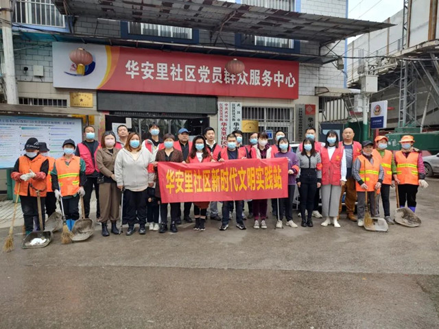 华安里社区新时代文明实践站组织共建单位、以及志愿者和环卫工人分组清理花圃、清扫楼道、铲除小广告、擦洗公示栏、打扫卫生死角,“志愿红”遍布辖区角落,呈现出一派热火朝天的忙碌景象。志愿者们用实际行动美化净化环境,同时还不忘对来来往往的居民进行了文明创建宣传,提高文明创建知晓率,鼓励大家多多参与到活动中来。