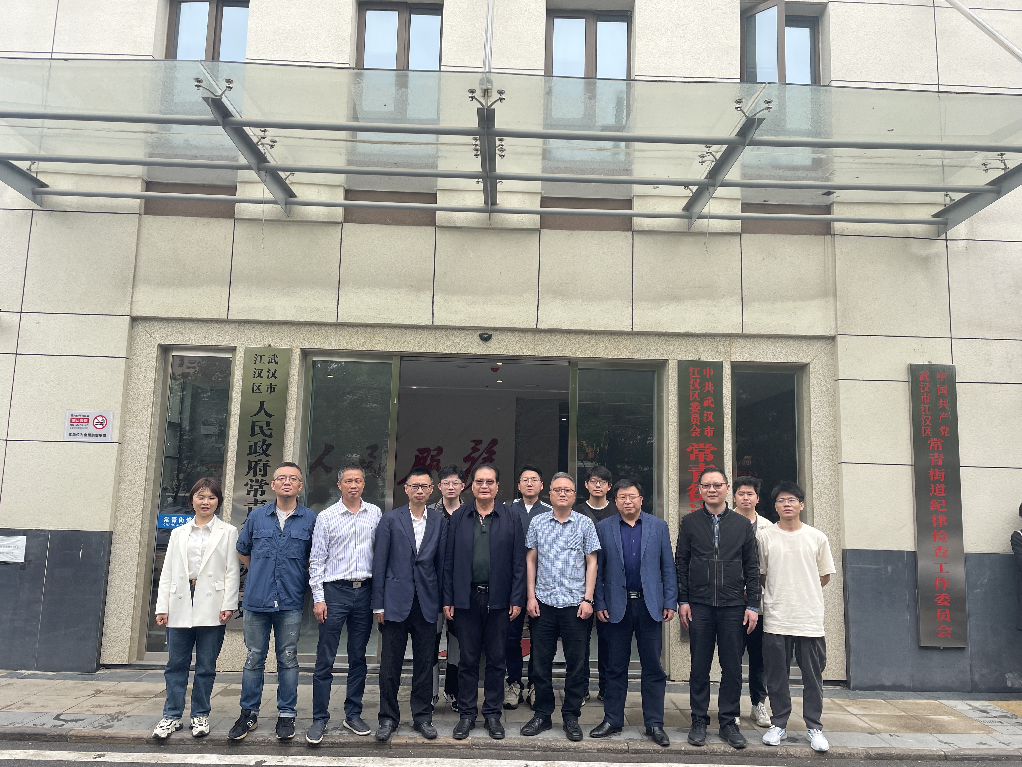 4月13日上午,华中科技大学国家治理研究院院长欧阳康、国家治理研究院副院长杜志章、国家治理研究院办公室主任赵泽林及团队研究人员们、武汉云公司董事长钟收成莅临常青街开展调研研讨工作。