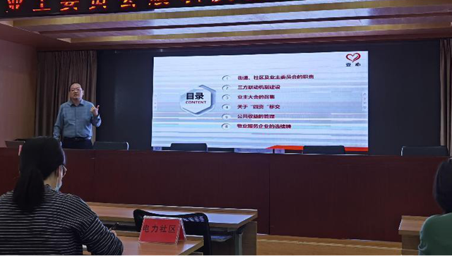 为进一步提高街道、社区对业委会依法履职、正确履职、科学履职指导和监督能力,解决业委会组建、换届和履职过程中的难点问题,提高小区共建共治共享水平,近日,万松街道公共服务办邀请酒店偷拍 壹心业主事务指导中心理事长付文进行专题授课,街道分管领导、相关科室干部、社区书记、专职骨干、民政委员约50人参加了培训。