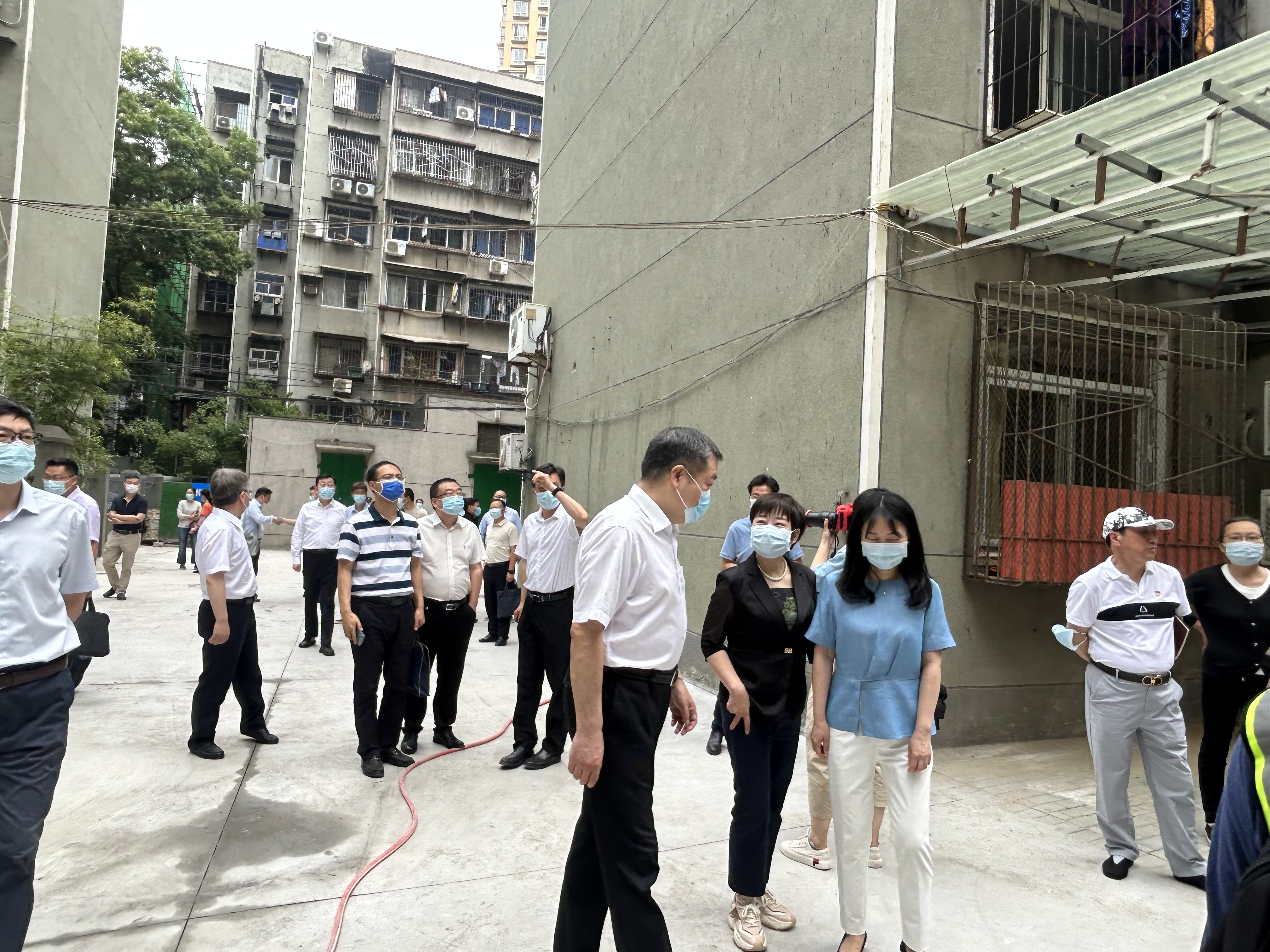 5月16日,上午,市政协主席杨智一行到酒店偷拍 唐家墩街西桥社区景桥花苑围绕推进老旧小区改造工作开展调研, 调研组一行详细了解了小区屋顶防水、道路整修、电线规整、外立面翻新等改造情况。
