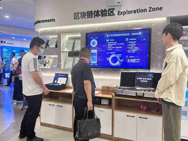 当天下午,在江汉经济开发区圈外数字创意产业园,与会代表参观了华中区块链科技融合创新中心,在区块链体验区体验了区块链+跨银行(数据)隐私计算平台、区块链+陶瓷溯源、区块链+固体危废品溯源监管等产品,深化对区块链赋能数字经济的认识。