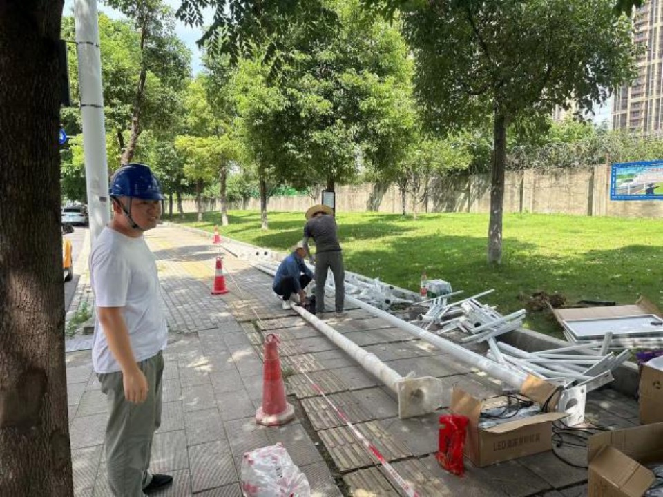 对此,唐家墩街道党工委副书记、办事处主任李谅十分重视,组织协调社区、建设局、城管局等相关单位以及居民代表多次到现场勘查、协商可行方案,居民骨干李爹爹也主动担任起“情报员”,收集居民意见,为方案注入群众力量。最终在经历了2场居民议事会的群力群策后,社区敲定方案,通过惠民资金顺利实施绿道路灯项目,在一个月不到的时间里,工人师傅顶着高温施工,社区工作人员做好后勤保障,在约400米长的沿线中,共修建了13根配有150WLED灯具的太阳能灯杆。目前调试工作已经完成,附近居民在小区群里“乐开了花”,纷纷点赞社区的“民呼我应”速度。