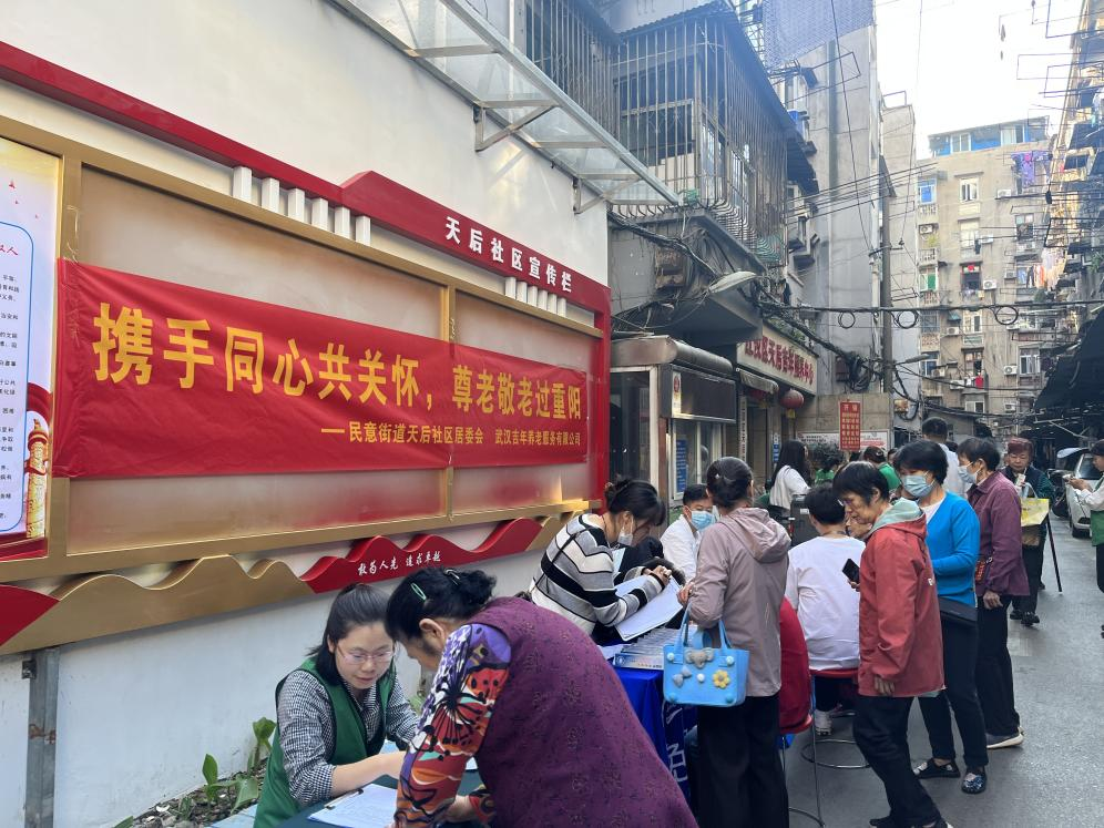 10月18日上午,民意街道天后社区联合吉年养老服务中心、民意街卫生院,邀请中诺口腔、叶开泰中医、普瑞眼科共同开展“携手同心共关怀,尊老敬老过重阳”重阳庙会活动,拉开民意街道“敬老月”系列活动的序幕。以社区养老中心为主轴,户外长廊为辅线,活动现场分为户外义诊专区、便民志愿服务区和室内趣味游园区,让所有参与的居民健康娱乐两不误。在义诊区,民意卫生院的家庭医生团队为居民测量血糖血压,指导用药;中诺口腔的医护人员进行口腔检查的同时还送上牙膏牙刷等小礼物;普瑞眼科的医生则耐心的为居民讲解爱眼护眼知识;叶开泰的坐诊医生则为老人号脉问诊。汉口银行的工作人员也为有需求的居民办理第三代社保卡。让居民的“小问题”、“小闹心”、“小麻烦”能够在家门就得到解决。此次重阳庙会活动,充分发挥了社区居家养老中心的阵地作用,活动以居民需求为导向,有的放矢开展庙会型的服务,让居民真正在活动中体会到快乐,愿意参与到社区活动中,形成良好的社区氛围。