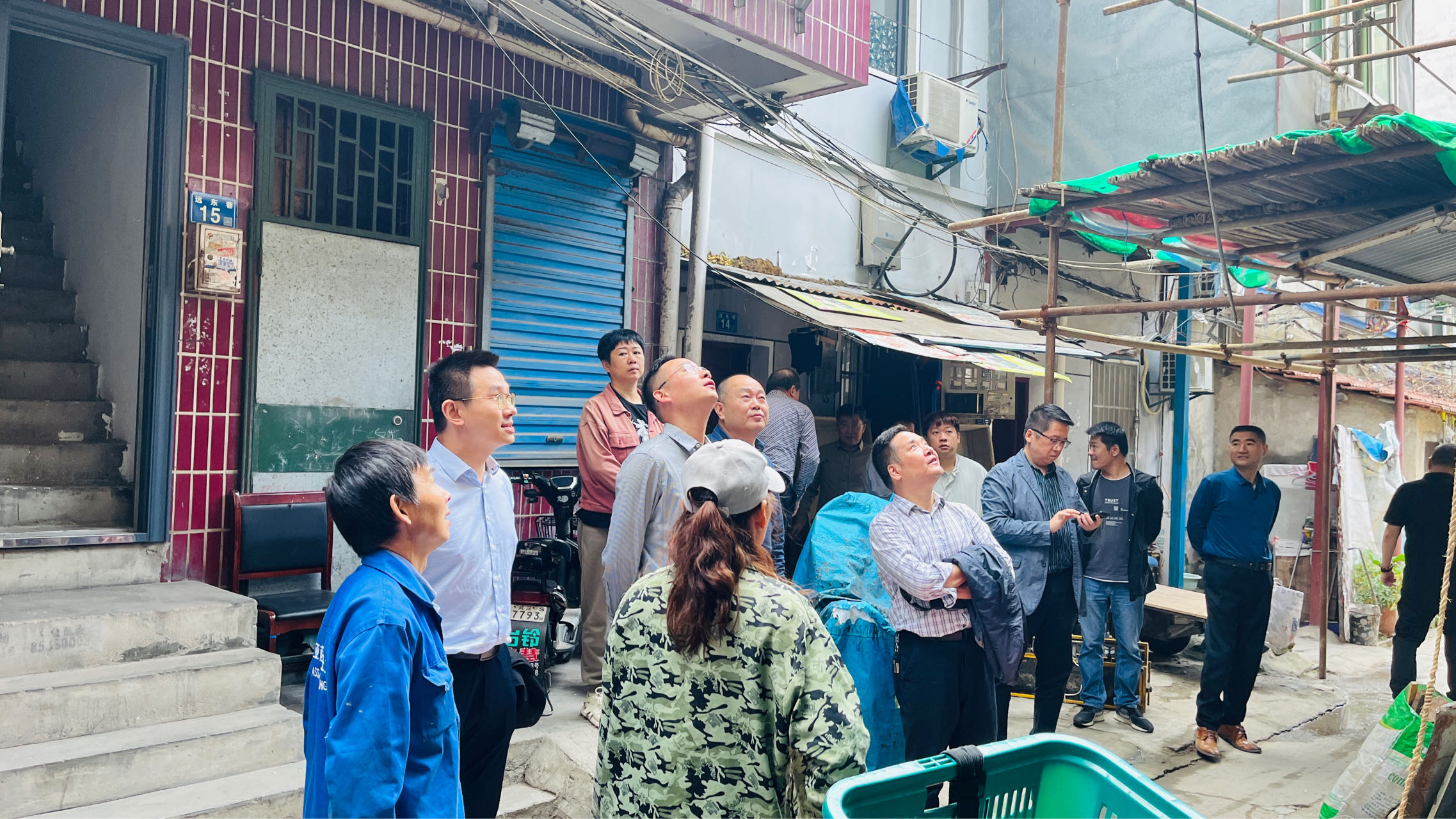 近日,为推进自建房安全隐患专项排查整治工作,市房管局党组书记陈鹏、市局安全处处长吴彭、区房管局局长张峡、副局长周舜等相关领导对民意街道远东巷114号自建房的整治销号工作开展实地检查,听取了114号房屋整治推进情况和排危方案。陈书记充分肯定了街道当前整改工作取得的实效,并提出下一步整治销号的工作建议和要求。