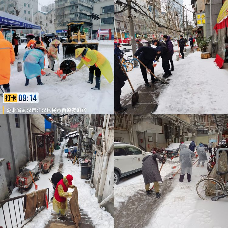 2月22日,武汉再次银装素裹,大雪覆盖道路,车辆、人员通行困难,严重影响了居民群众的出行安全与日常生活。为消除此次降雪带来的不利影响,确保道路安全畅通,民意街道以雪为令,迅速响应开展除雪保畅工作,努力实现雪停路清效果。街道及时启动雨雪天气应急预案,迅速调配机械设备、人员开展融雪、清雪、除冰工作。采用“机械+人工”组合作业模式,对主次干道、重点路段、沿街路口等路段抛洒融雪剂防止道路结冰;利用雪铲车、环卫车辆等机械开展作业,清扫道路积雪;组织保洁人员集中力量优先开展重点路段积雪清理,确保居民正常出行;针对农贸市场、住宅小区、经营店铺门前等重点区域,广泛动员沿街商户落实“门前三包”责任制,进一步提高清雪效率。同时,街道领导班子带头,组织机关干部、社区工作人员、下沉党员、志愿者队伍及热心群众等,全员早7点到岗,使用铁锹和扫把等工具,对辖区内小区楼栋、主次干道的积雪结冰路面进行清理,并利用网格群、宣传栏以及小喇叭进行雨雪天气出行安全提醒,保障居民出行安全。截至目前,民意街道共出动扫雪应急队伍300余人,抛撒融雪盐2吨,麻袋100余条,环卫车辆3台,4台铲雪车辆正从友谊路两头同时作业,尽快保证道路畅通,辖区各次干道、背街小巷积雪正在积极清理中。