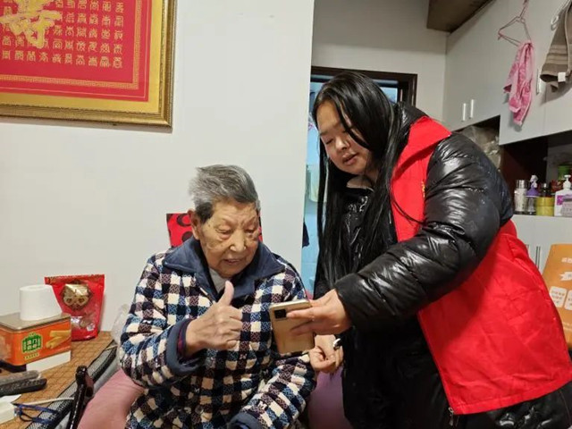 红梅里社区网格员上门慰问独居老人,为老人送上牛奶、食用油等物资,给老人做家务,和老人交流谈心,并叮嘱老人注意安全,保重身体。