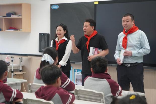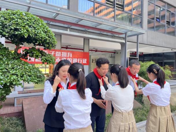刚进入学校,学生们为代表系上红领巾,用少先队员特有的方式表达对代表的欢迎。接着在学校相关负责人的带领下,黄春燕、魏旭代表一行实地参观了天文广场、心语信箱、先锋足迹馆以及科学实验站等特色校园场所,优美的校园环境、完善的基础设施、浓厚的育人氛围、师生积极向上的精神风貌给代表们留下了深刻的印象。