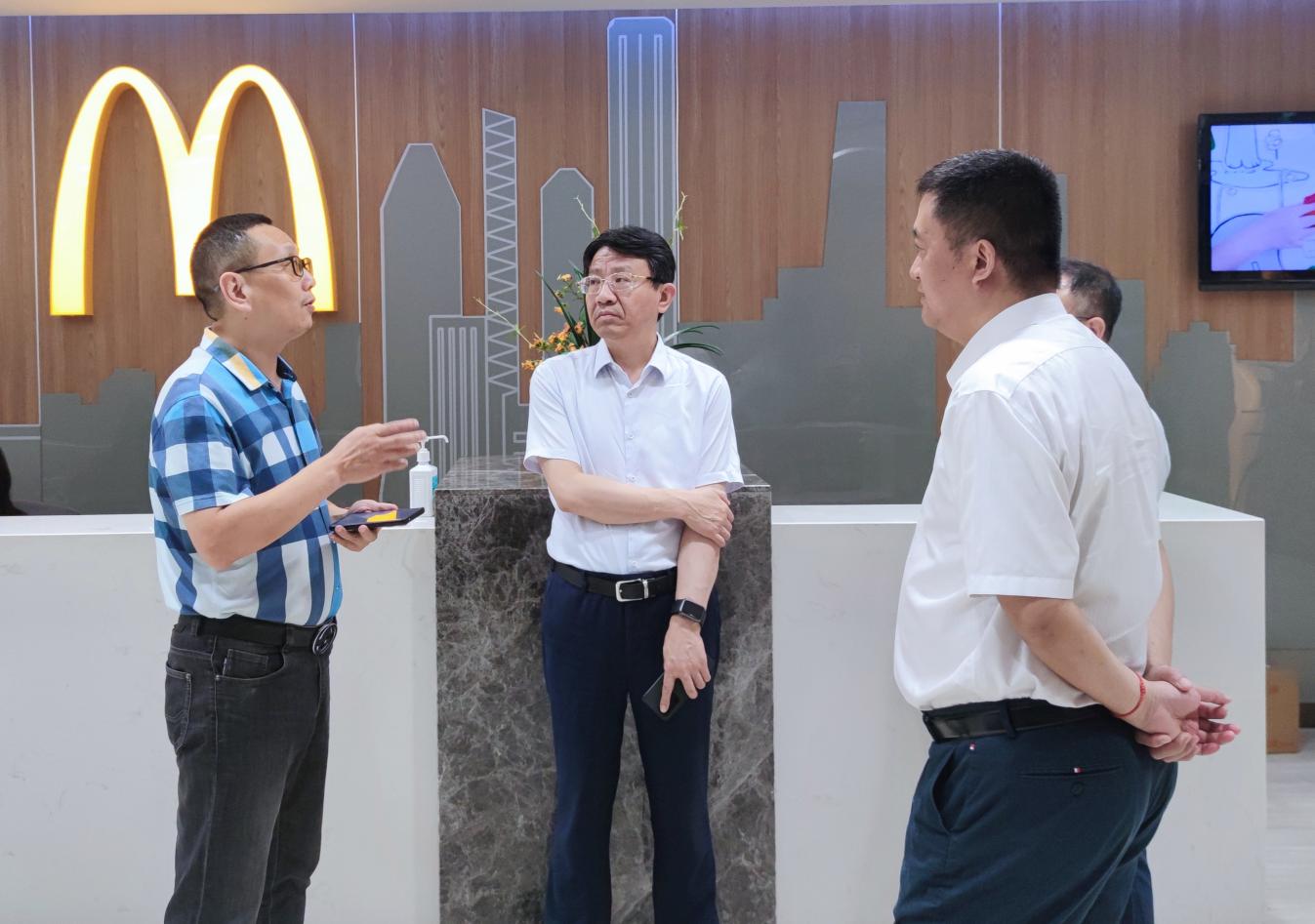 揭牌仪式后,何裕生一行走进武汉金拱门食品有限公司,与企业负责人、区人大代表胡四开深入交流,了解企业生产经营和人大代表履职情况,听取意见建议。