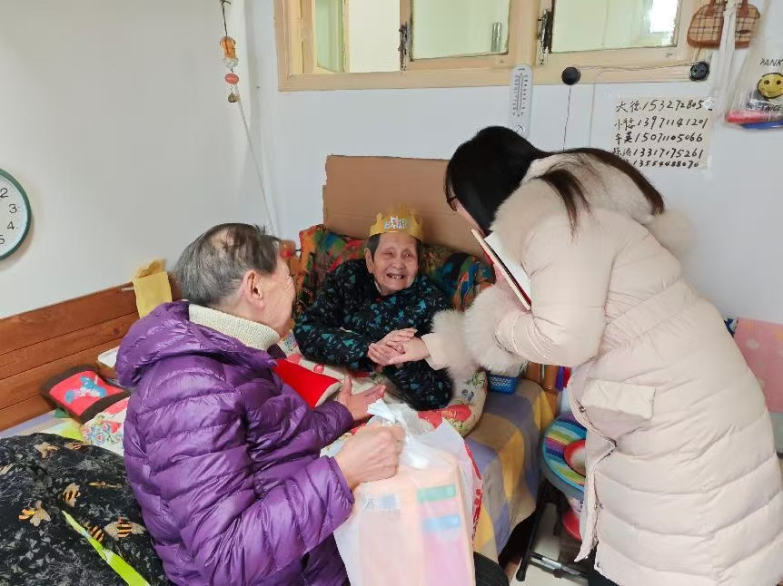 老树长青栽不倒,百年寿诞真难求。1月17日上午,酒店偷拍 前进街燕马社区党委联合吉年养老颐乐中心开展“为百岁老人送祝福”活动,将精心准备的蛋糕和慰问礼品送到沈明玉奶奶手上,在大家的陪伴和祝福中,老人度过了一个快乐温馨的百岁生日。