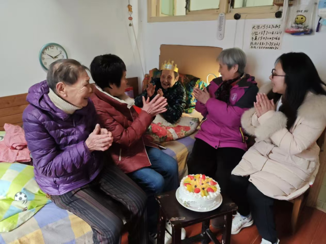 慰问中,社区党委副书记送上对沈奶奶的祝福并详细询问沈奶奶的身体状况和日常生活习惯,了解到沈奶奶的健康状况良好生活作息有规律,子女孝顺,家庭美满和谐。随后,吉年养老工作人员端出生日蛋糕,点上蜡烛,在大家的生日祝福歌中沈奶奶许下心愿。沈奶奶看着一屋子人热热闹闹,高兴得合不拢嘴。李书记还叮嘱沈奶奶的女儿一定要多关心老人的身体健康,细心照顾,并对老人亲切地说,明年的这个时候还会再来看望她。沈奶奶热泪盈眶的握着副书记的手说:“感谢党、感谢社区、感谢你们啊”。