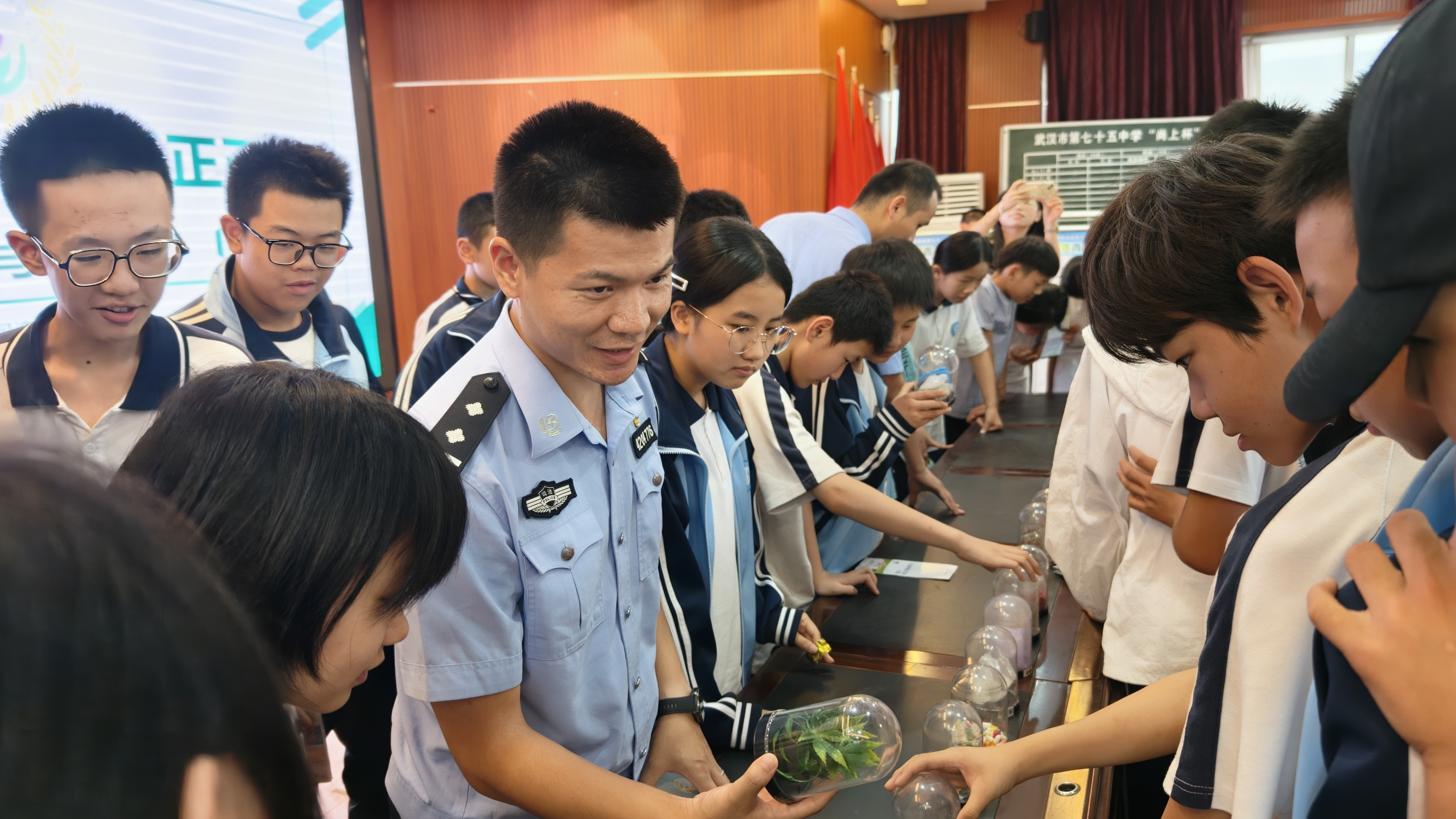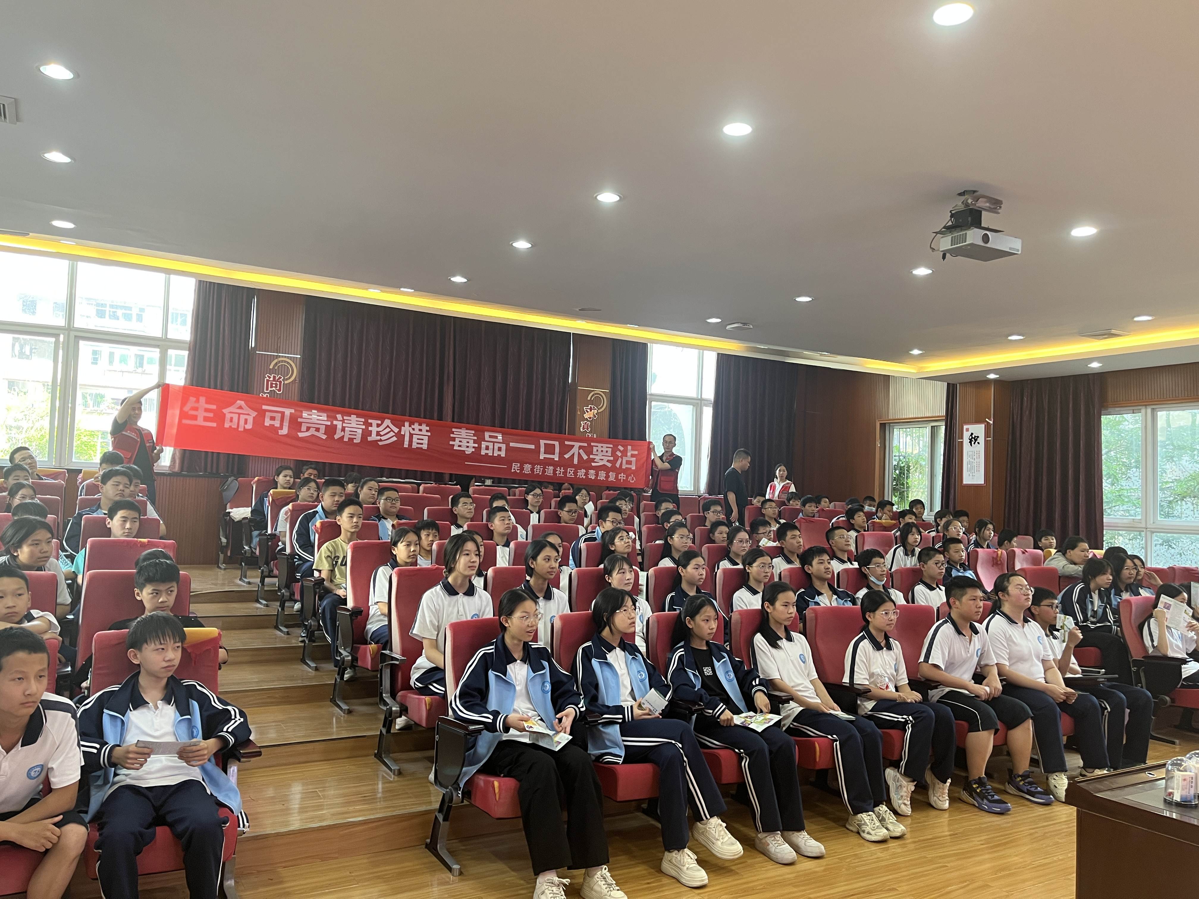 2025年6月5日,民意街道社区戒毒康复中心联合武汉市司法局何湾强制隔离戒毒所,在武汉市第七十五中学开展“全民共治 防范青少年药物滥用”为主题的禁毒宣传教育活动。武汉市司法局何湾强制隔离戒毒所三级警长陈鑫霁警官主讲,他以丰富的专业知识,通过图文并茂的PPT,从毒品的种类、毒品的认知、如何识别和远离毒品等方面,为学生们带来了一场深刻的禁毒知识盛宴。为了让学生们更直观的感受毒品的危害,讲座上还展示了仿真毒品模型。学生们近距离观察并了解毒品的真实面貌,纷纷表示受益匪浅,今后一定会加强学习、提高警惕,远离毒品。