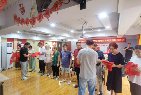 活动中,街道社会事务办公室负责人江思源和社区党委书记肖平为党员志愿者发放红马甲。这抹亮丽的“志愿红”瞬间成为现场焦点,老党员廖声芳抚摸着胸前的党徽感慨道:“穿上红马甲就是扛起责任,我们要把党的温暖送到党员群众心坎上。”据介绍,项目已组建由12名党员组成的志愿服务队,涵盖困难帮扶、文化娱乐、生活照料等多个领域。