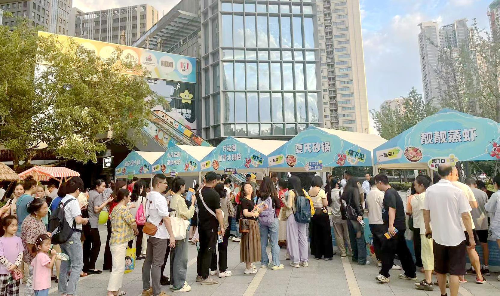 除了动人的音乐,活动现场的“美食专区”更是人气爆棚,成为市民追捧的焦点。沿着中海中心的楼宇,多家王牌美食摊位依次排开,滋滋冒油的烤串在炭火上翻滚,肉香混合着孜然的气息直钻鼻腔;Q弹爽滑的砂锅端上桌时还在咕嘟作响,热气腾腾中散发着食材本真的鲜美;冰镇鲜啤开盖瞬间的气泡声,搭配一口冰爽下肚的畅快,成为夏夜最惬意的享受。
