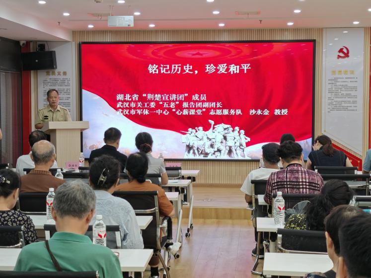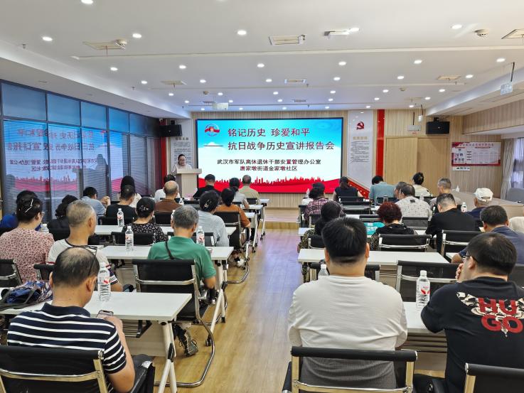 为纪念中国人民抗日战争暨世界反法西斯战争胜利80周年,8月14日上午,唐家墩街道金家墩社区联合武汉市军队离休退休干部安置管理办公室,共同举办了一场宣讲报告会。