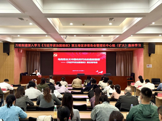 近日,万松街道深入学习《习近平谈治国理政》第五卷宣讲报告会在街机关219会议室举行。街道全体党员干部、社区书记、副书记、辖区入党积极分子及发展对象等近100人参加学习。
